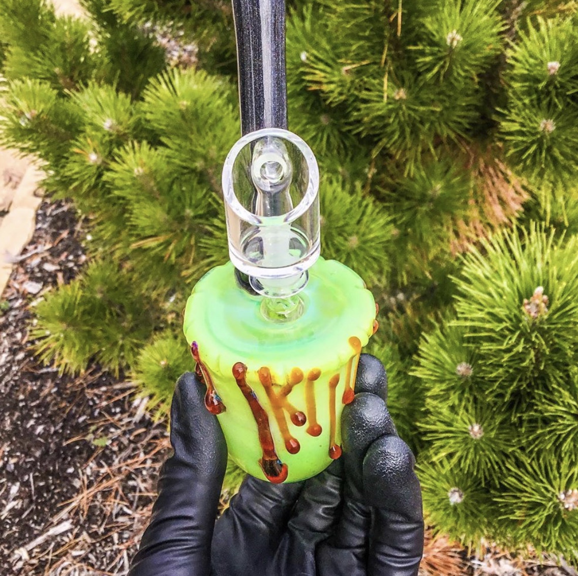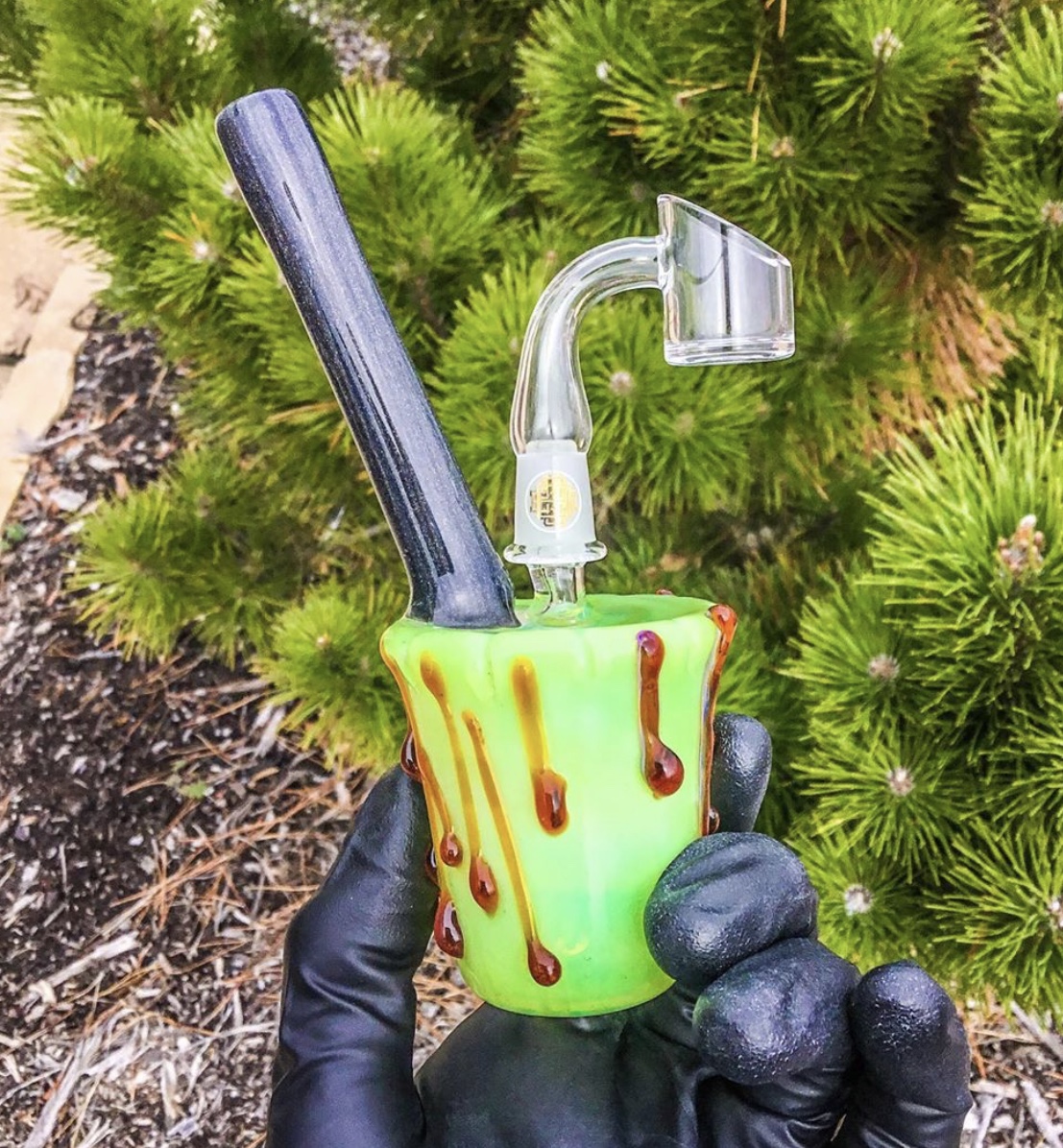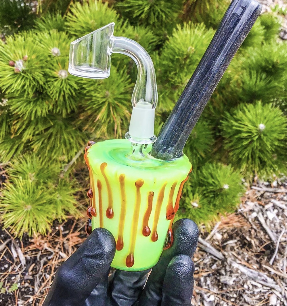 Mini drip cup rig, 10m Male joint and 2 hole Diffie. Comes with a Quave Club banger!