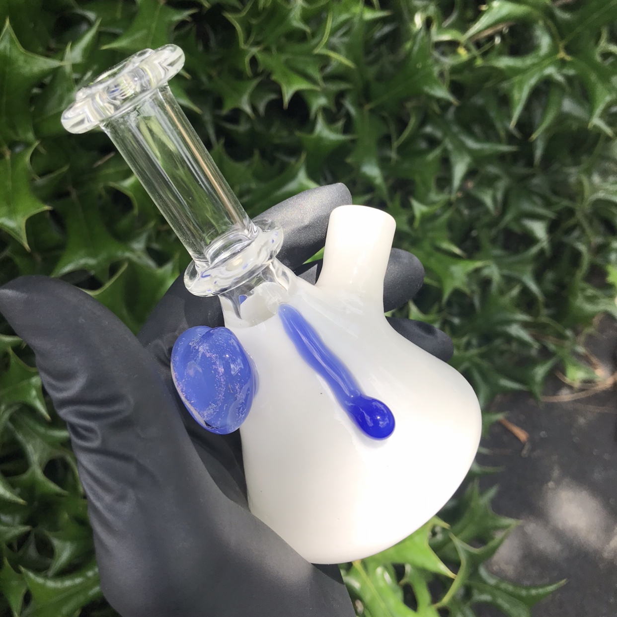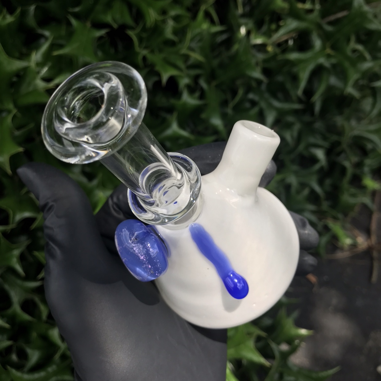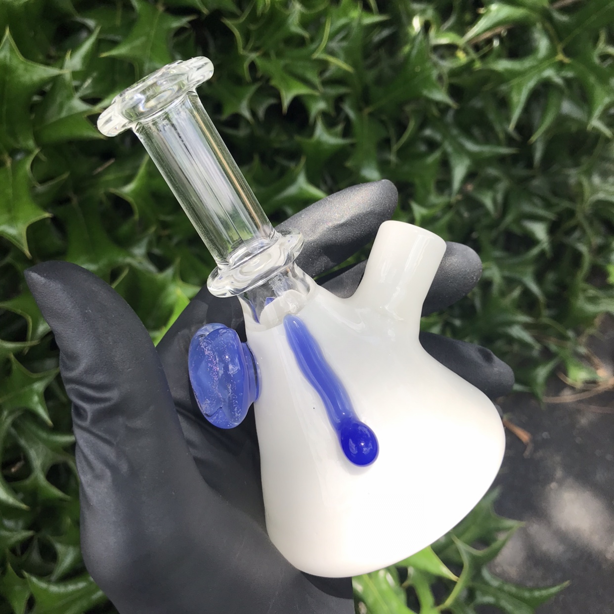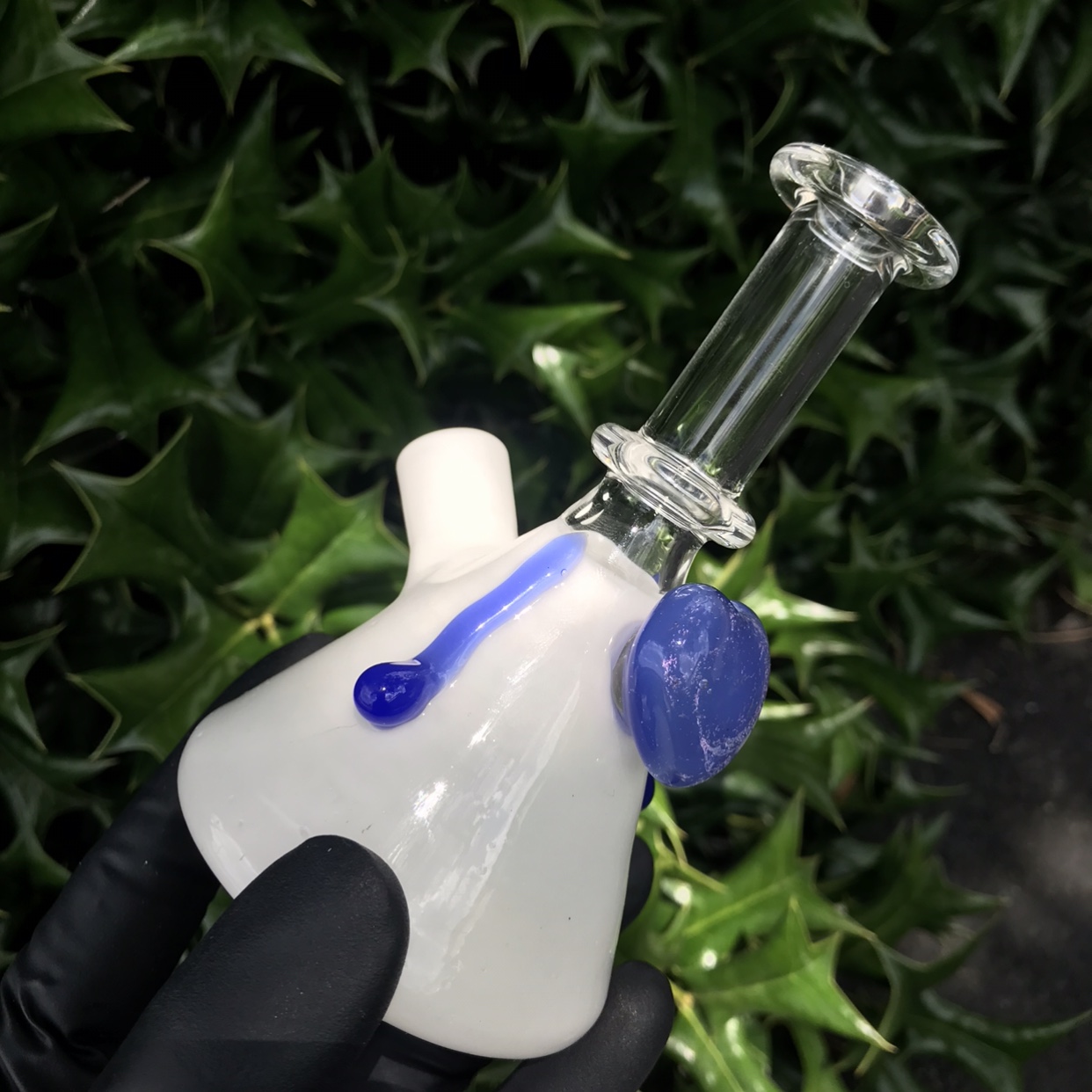 This mini beaker from 2Pistol Crystal is made of Star White with Purple Lollipop accents. Features a 10mm joint, with built in downstem for great function!