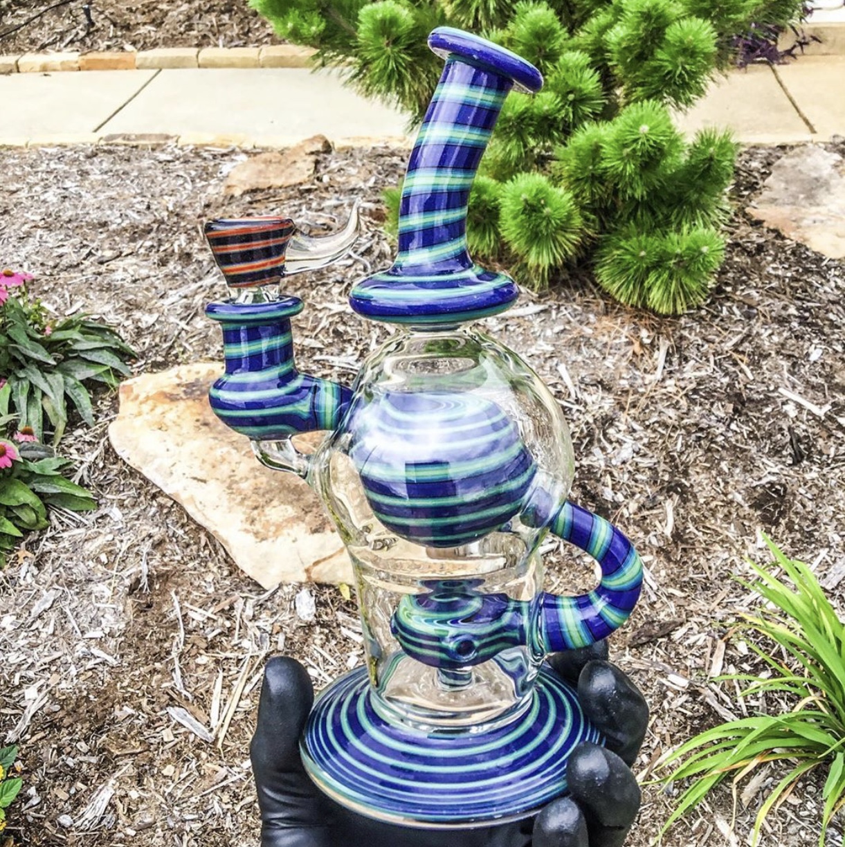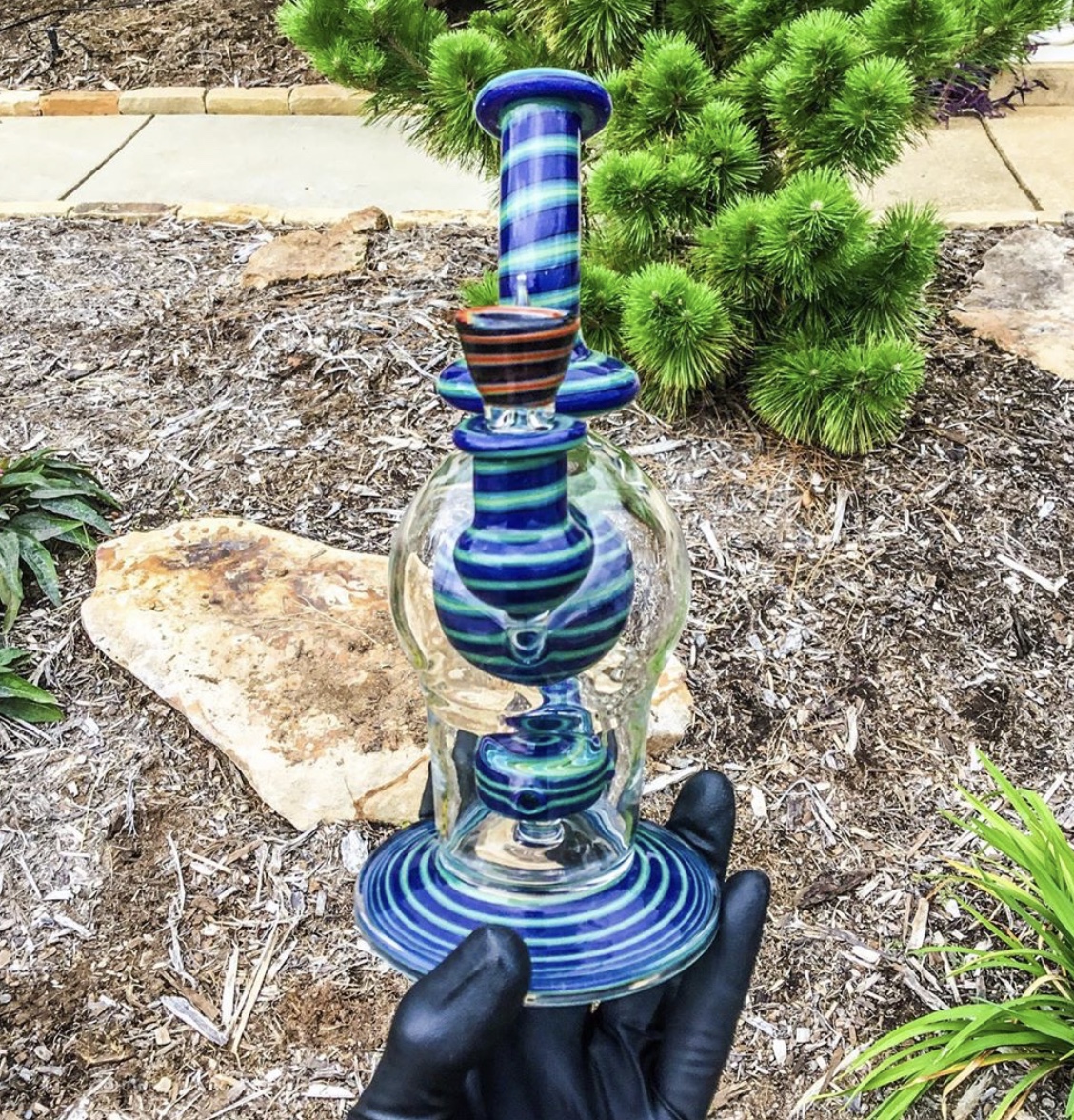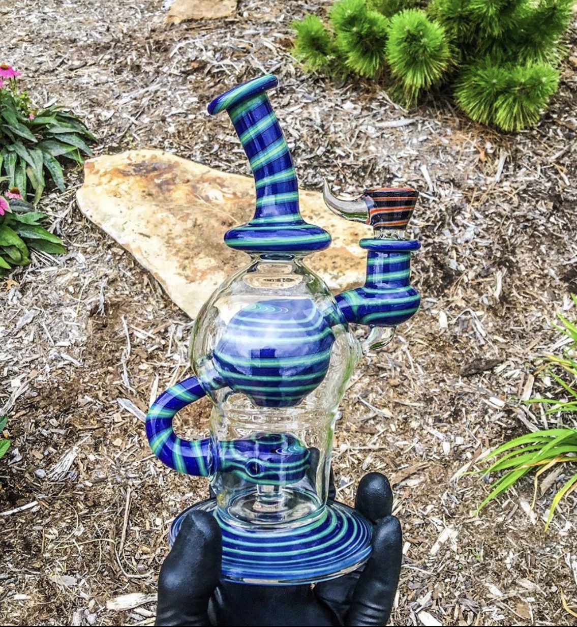 Andy G Glass ball Klein rig features a green and blue colorway, comes with a contrasting red and orange colorway bowl slide.