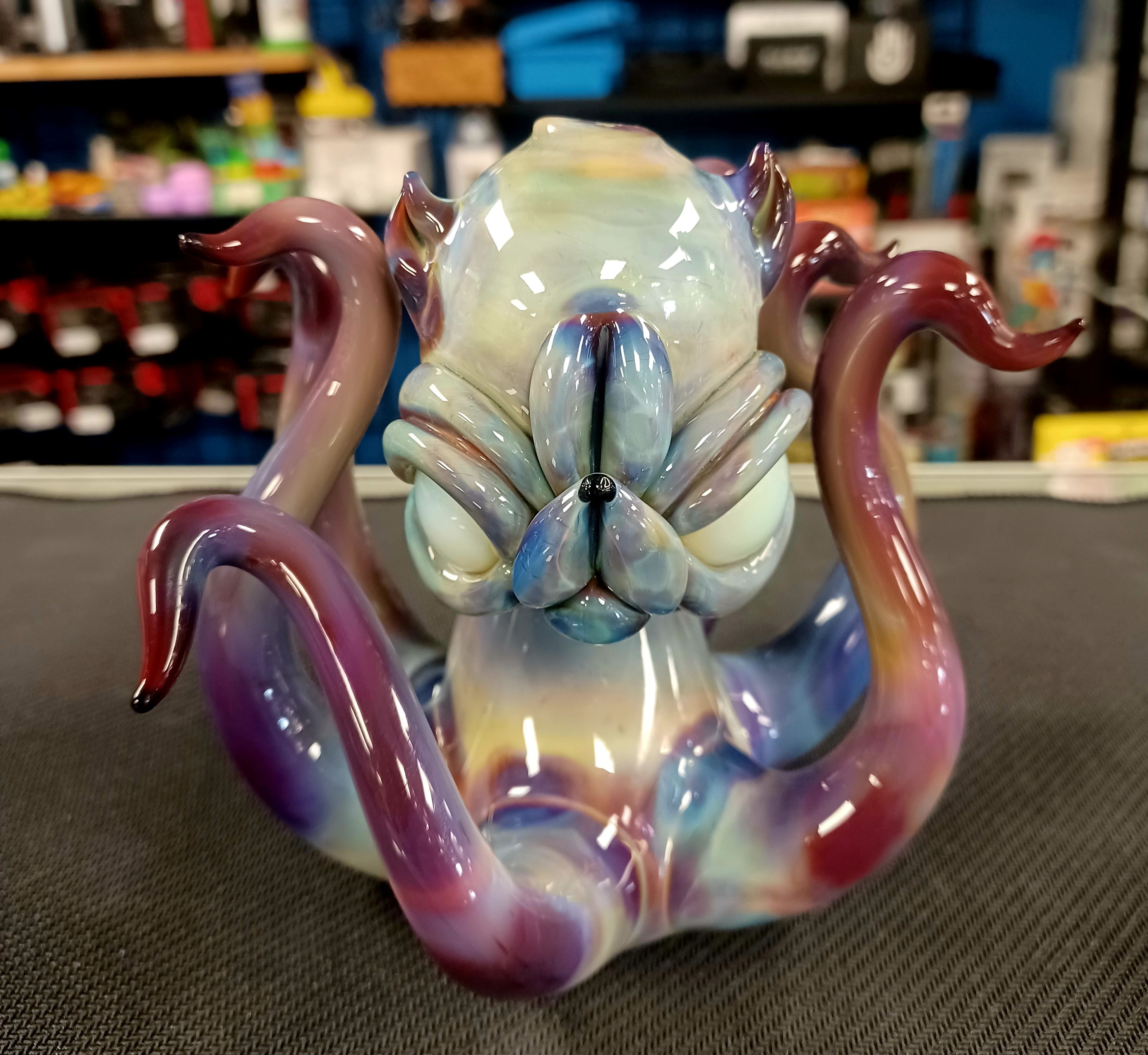 This signed Blicky Octopus Rig from Casto Glass is a unique sculpted piece. With a face of a pug and a body of an octopus, you are sure to WOW everyone with this piece. It is a 14mm size and has great weight to it.