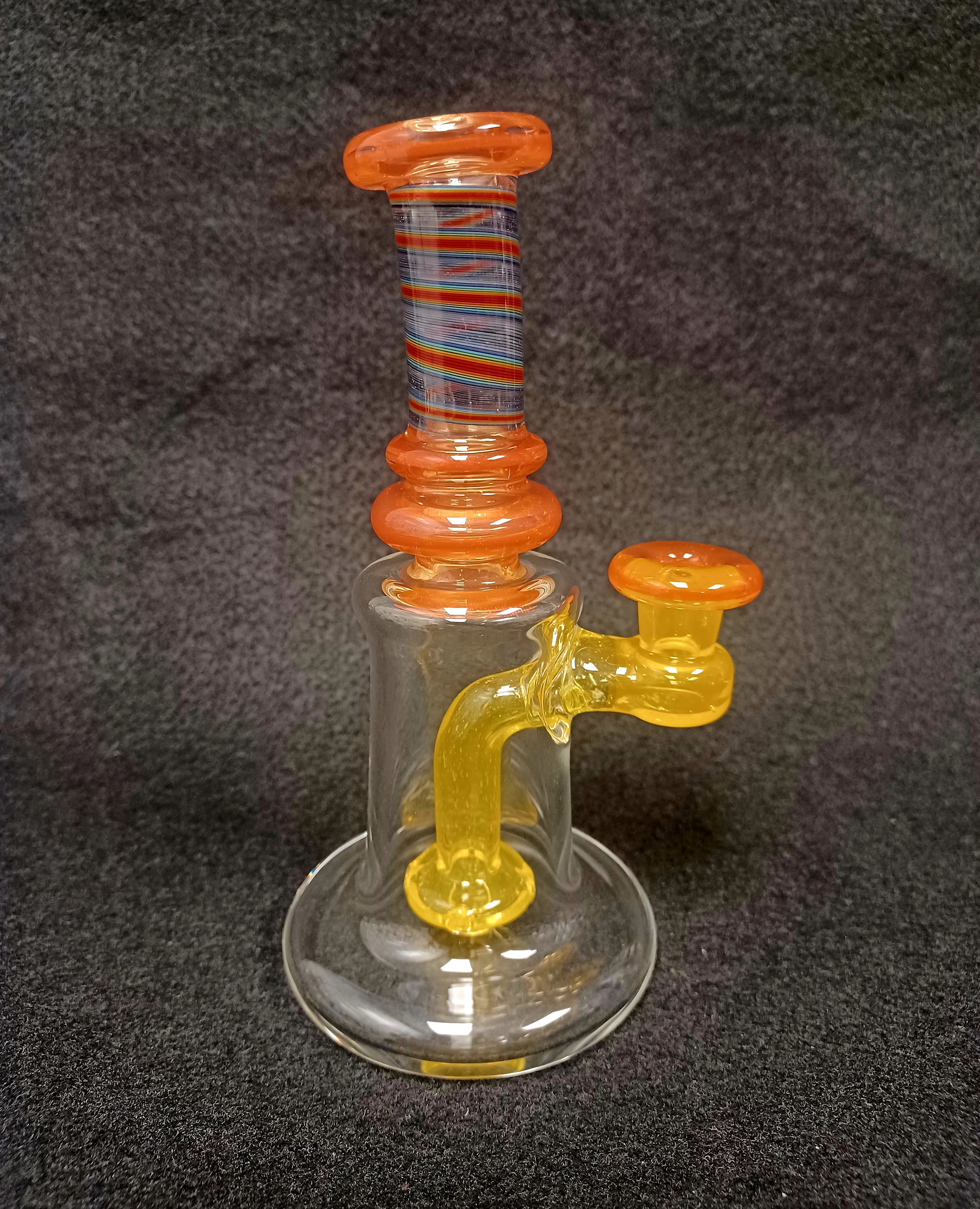 If you are looking for a great mini rig that rips, check out this piece from Collin Gueterman! 4 hole diffusion on the fixed downstem to give you a killer hit. Size 10mm