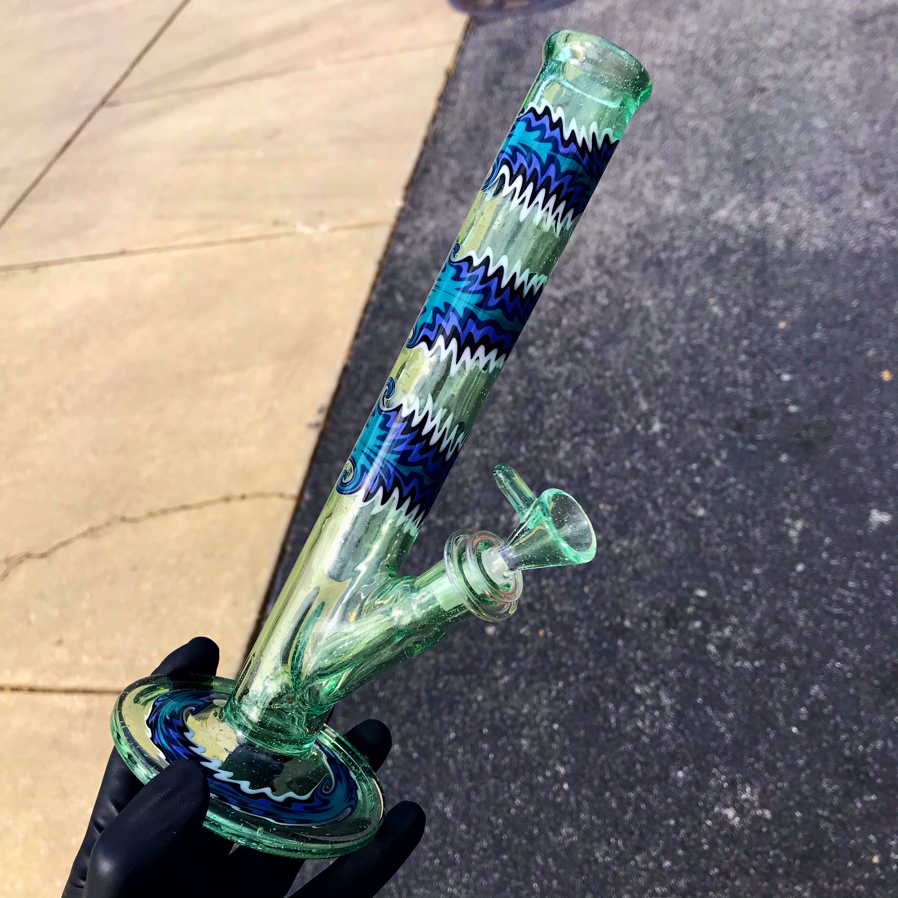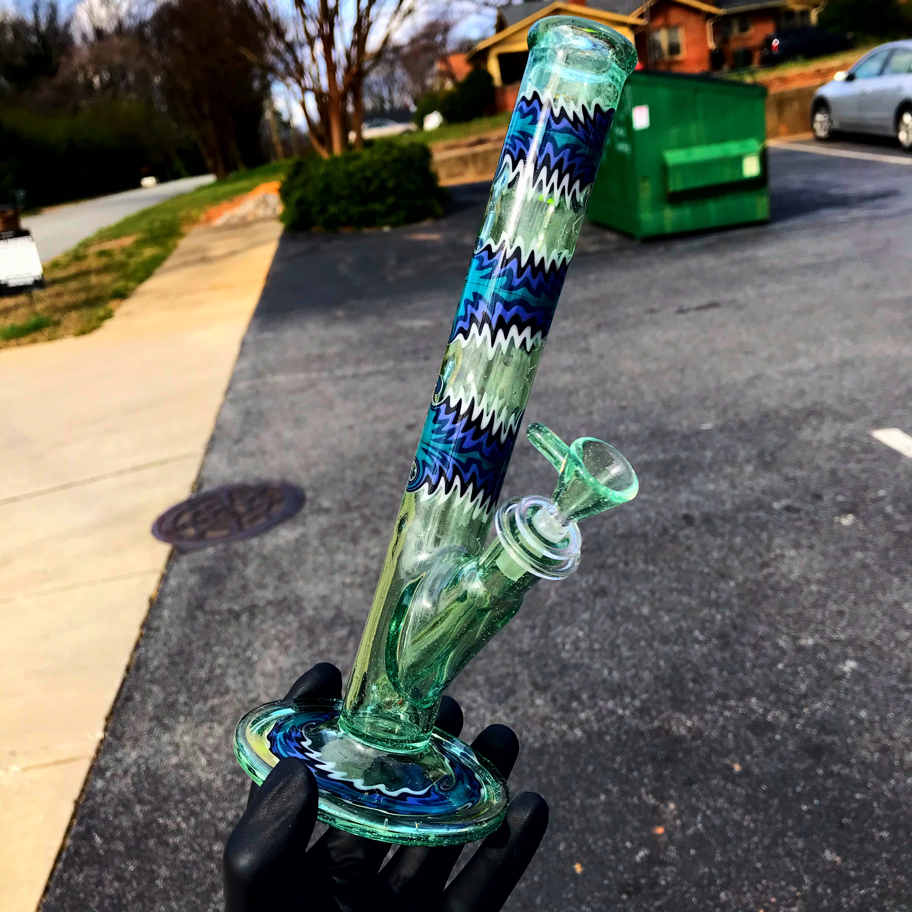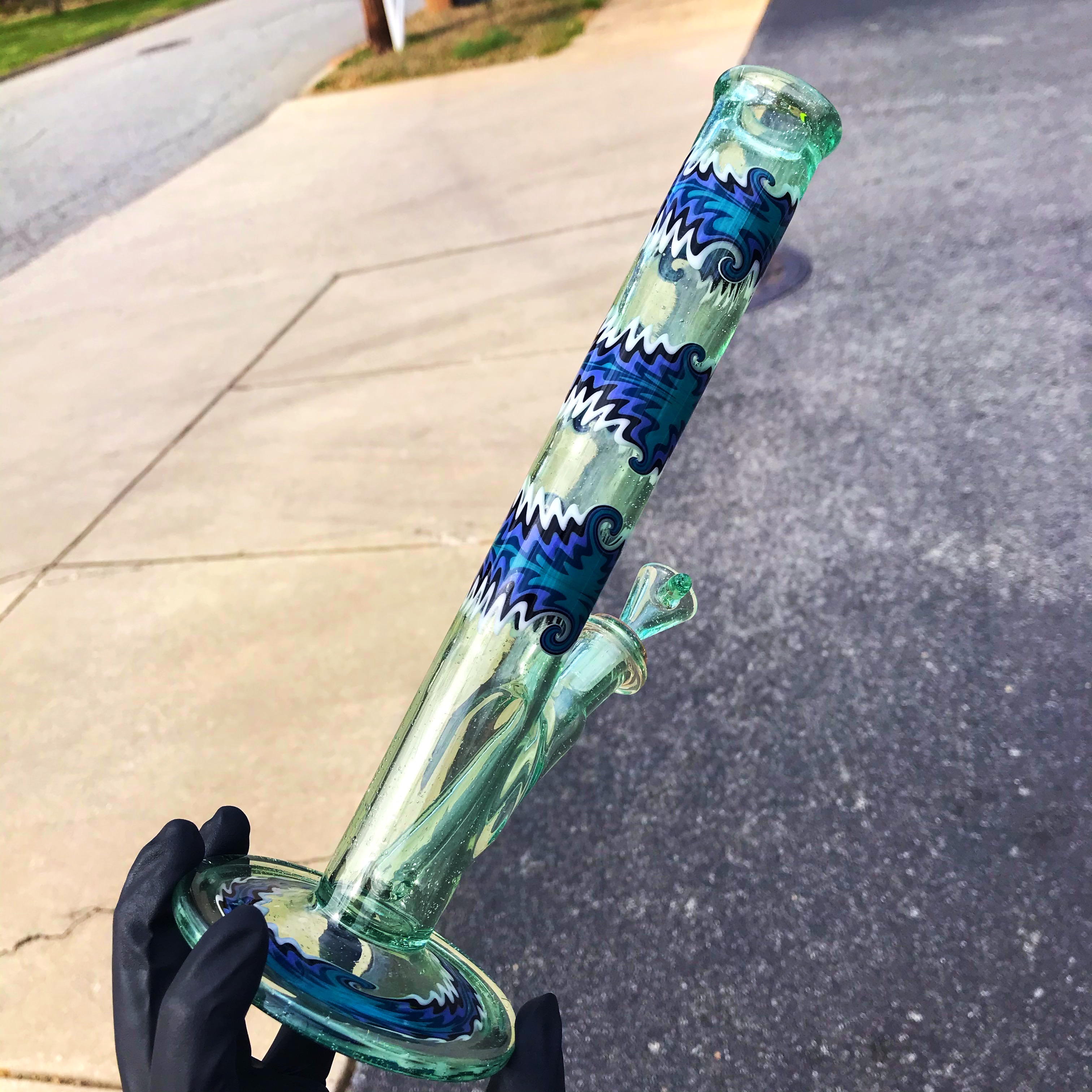 Dawnk Glass CFL straight flower tube! These wig wag sections have hidden UV stringers throughout and absolutely POP! in a UV light!