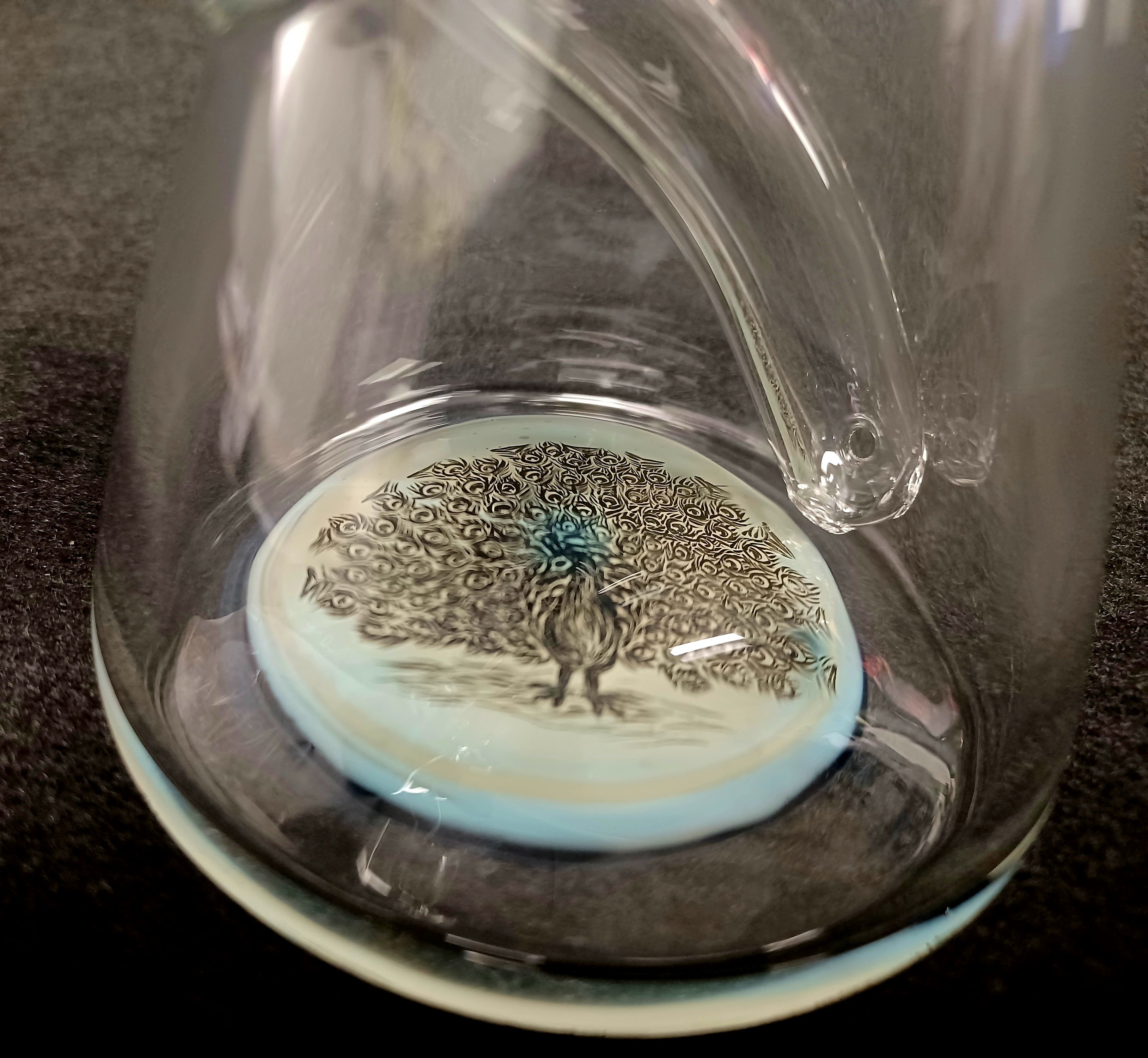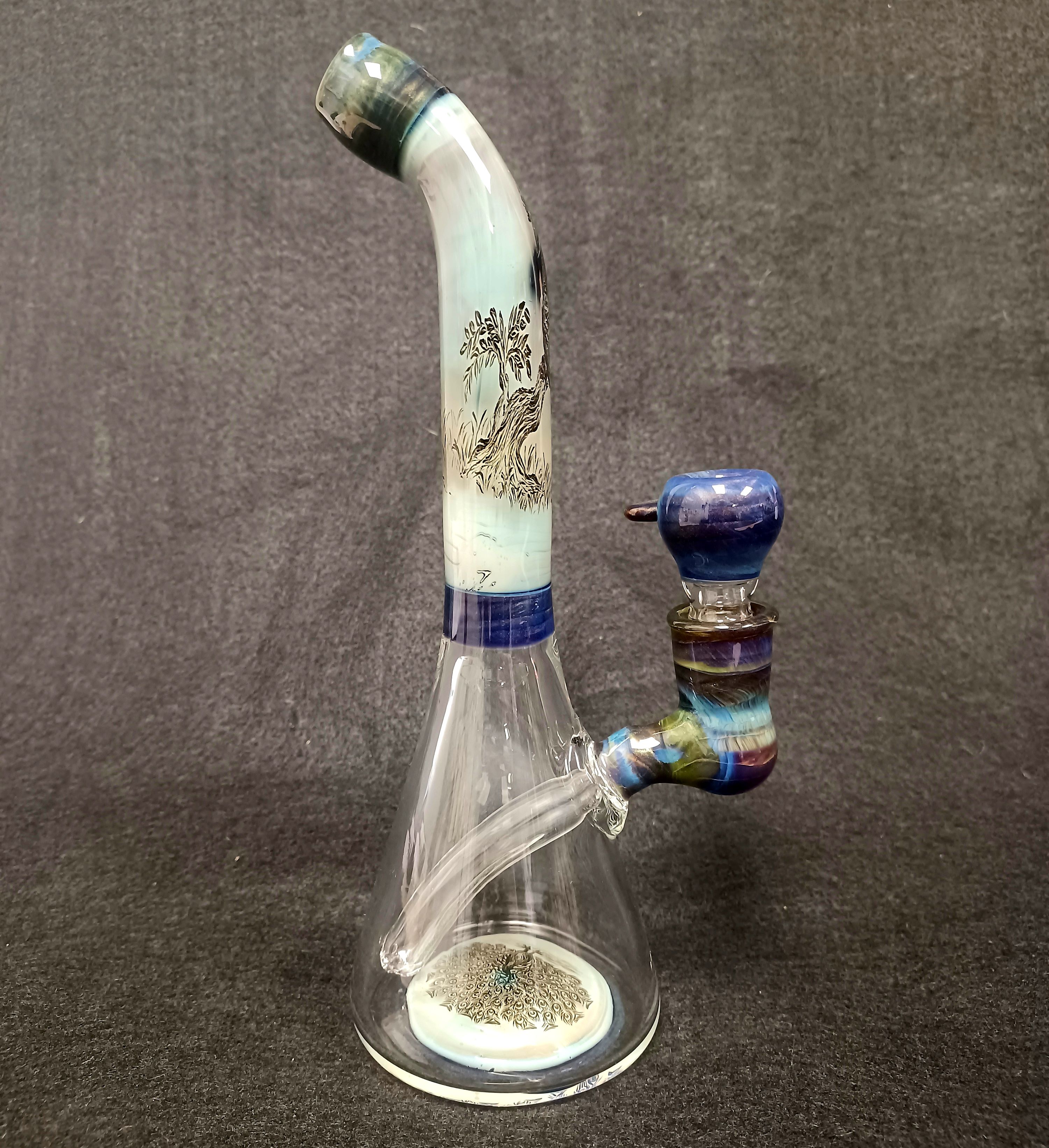 Here we have a great beaker from Deranged Lion Glass! This piece features some great glass drawings. Size 14mm and comes with a matching slide!