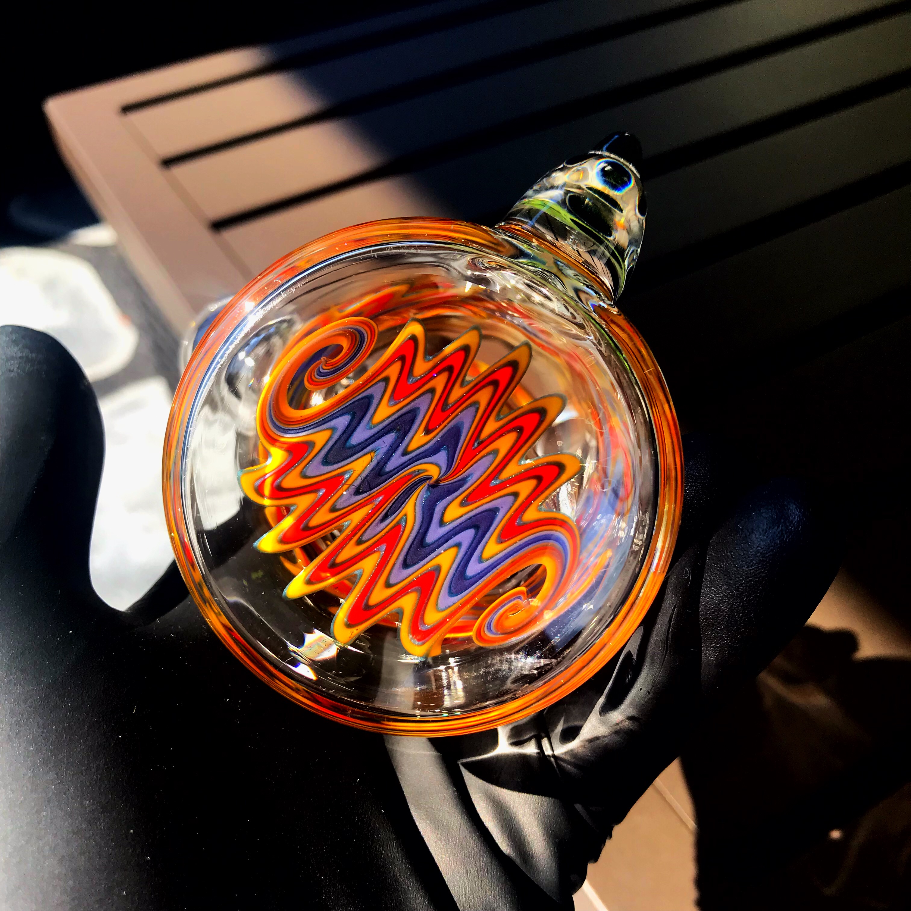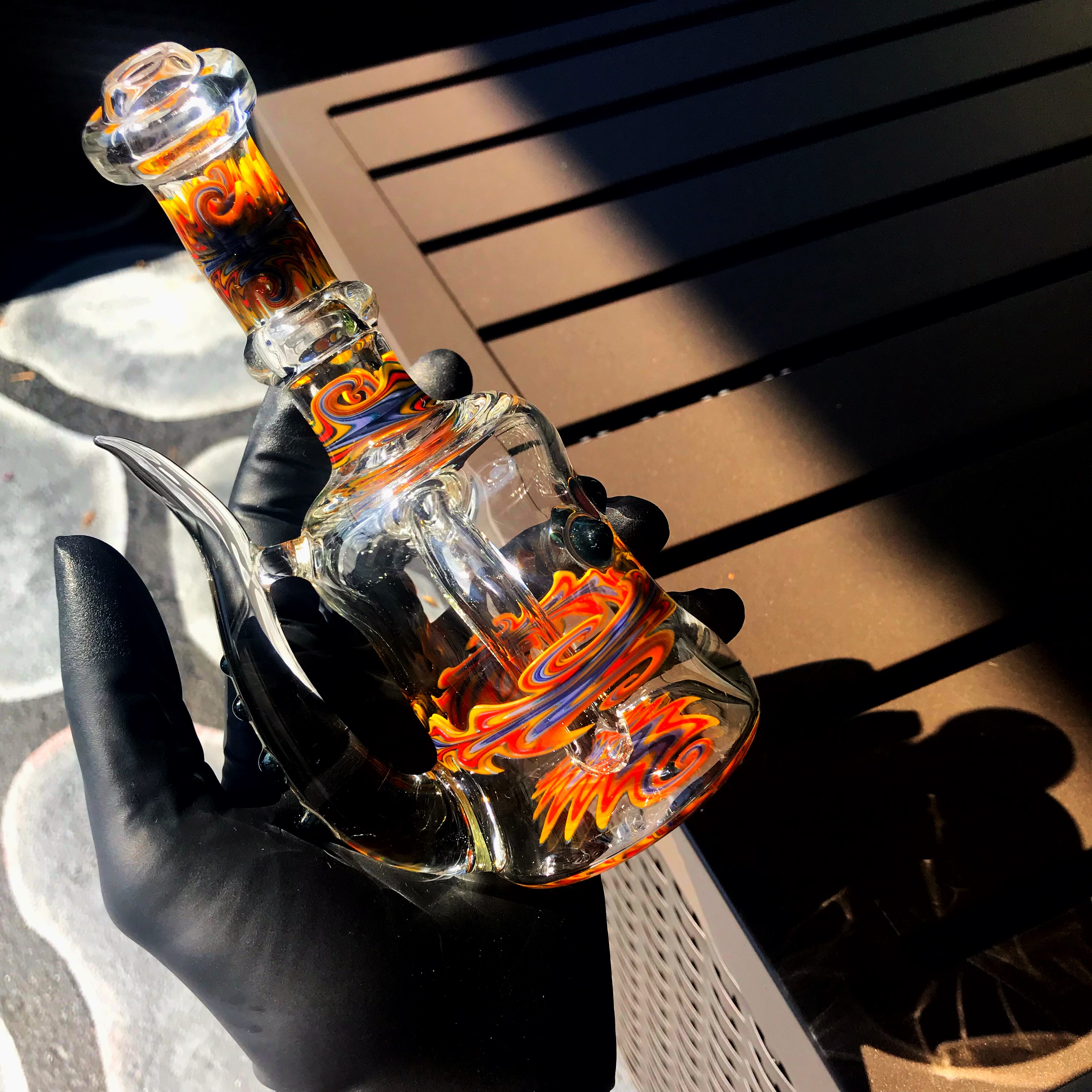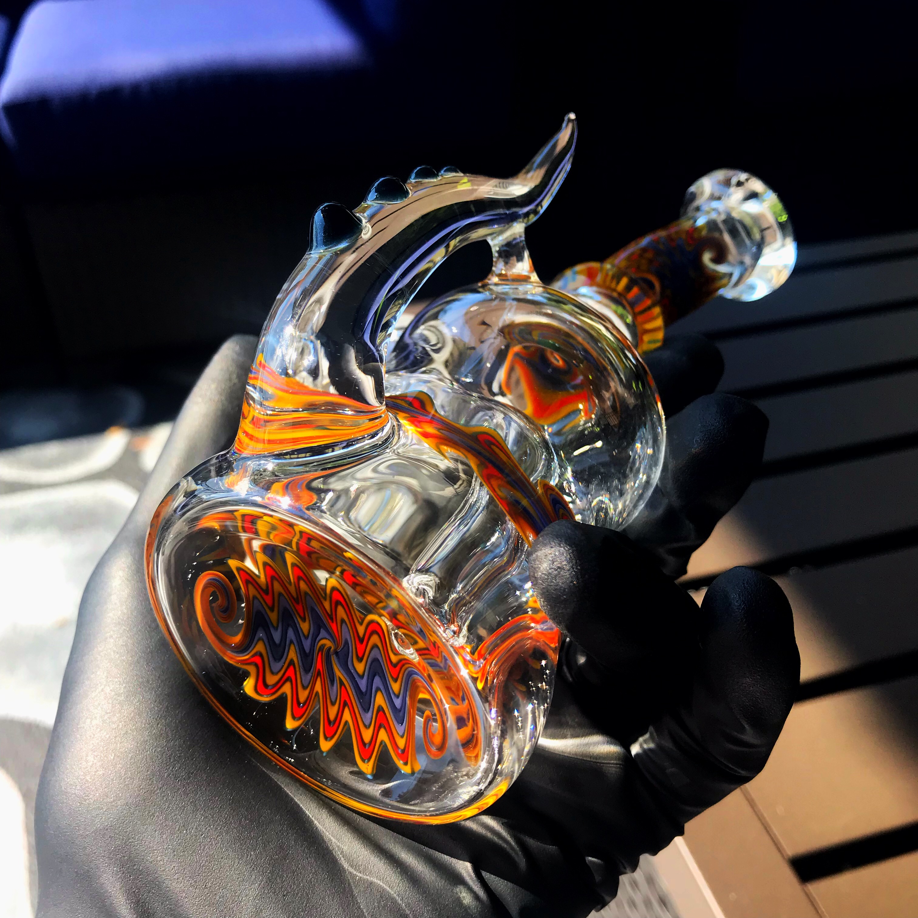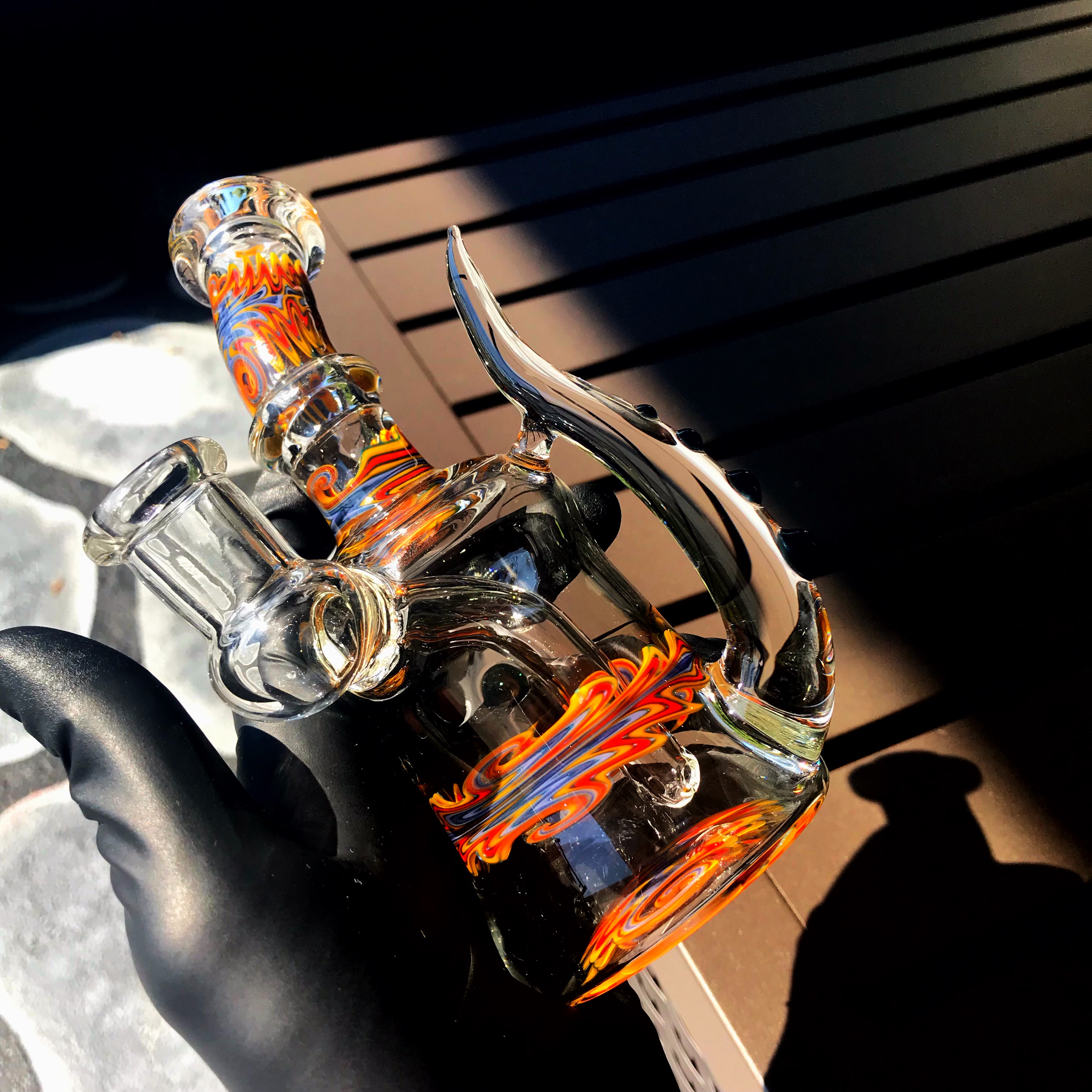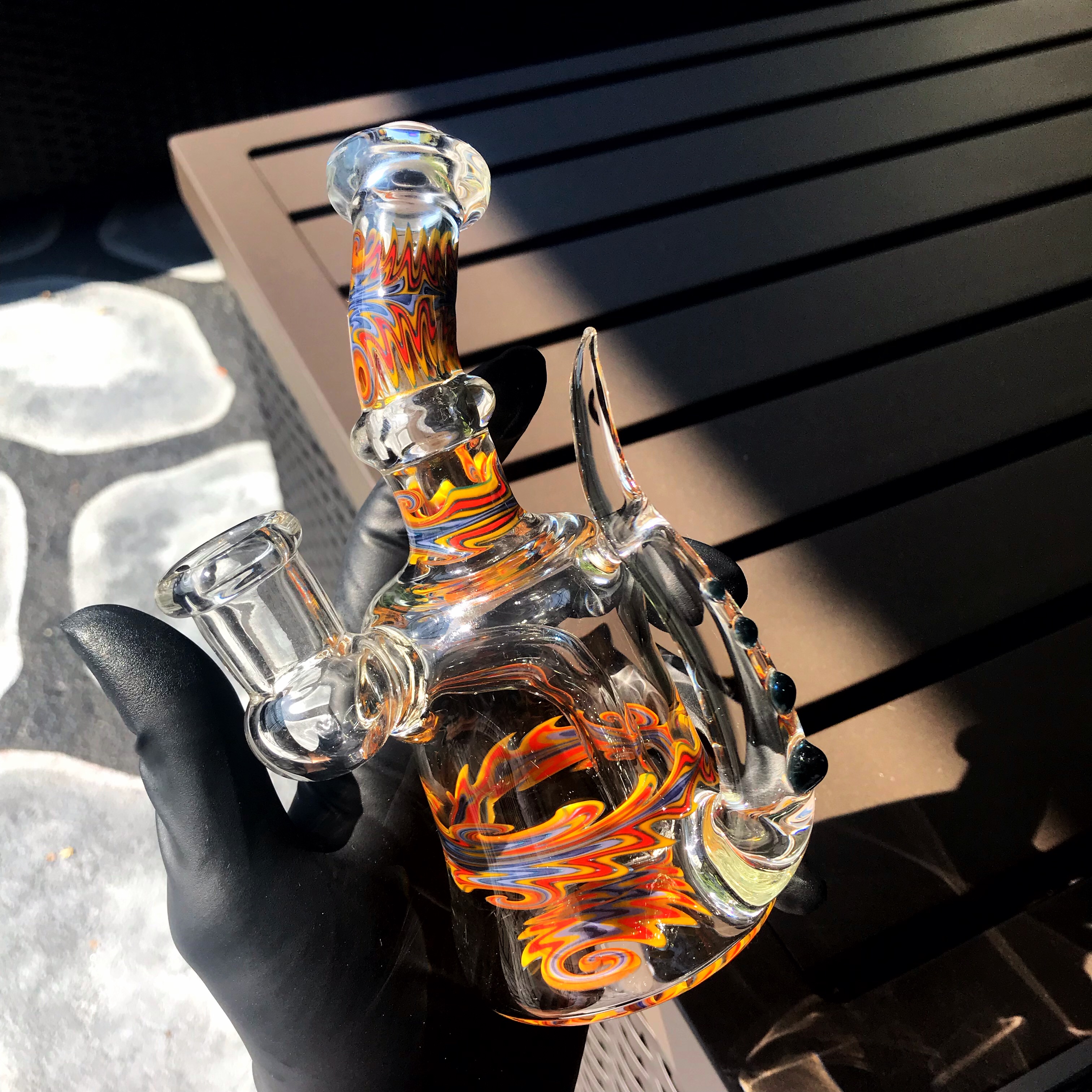 Devo put together this fade to clear tube, with horns, and a three hole diffused downstem.