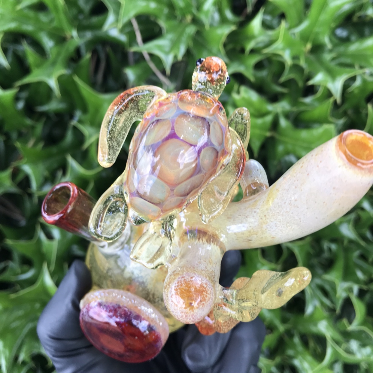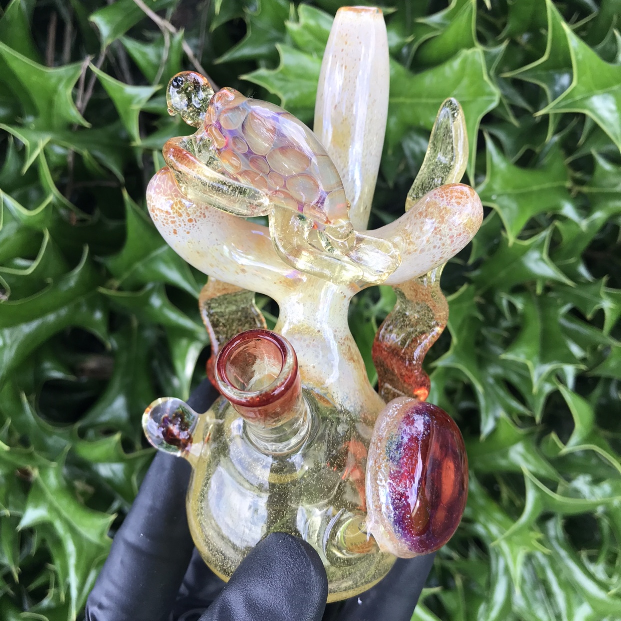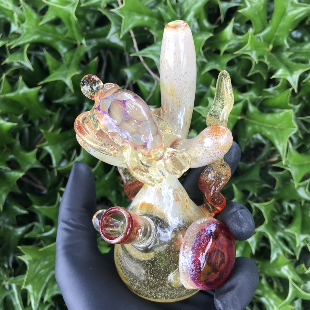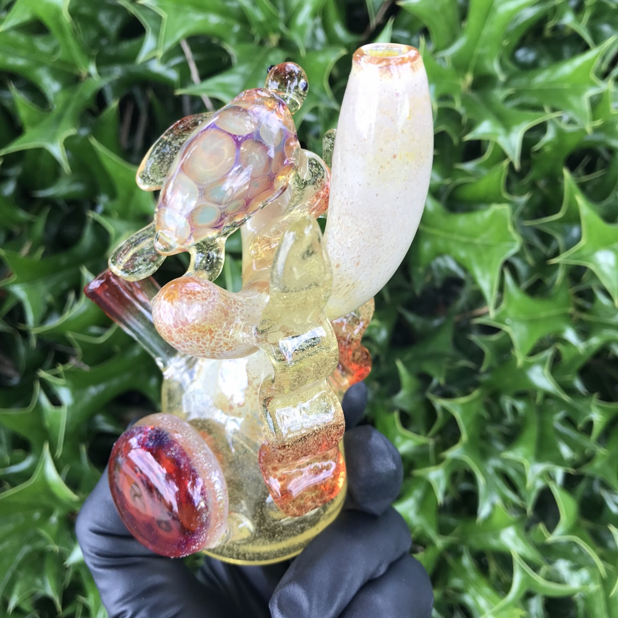 This piece from Glassical Creations is beautifully sculpted, with a turtle on the neck, and a 10mm 45 degree joint! CFL bade, along with tremendous function!