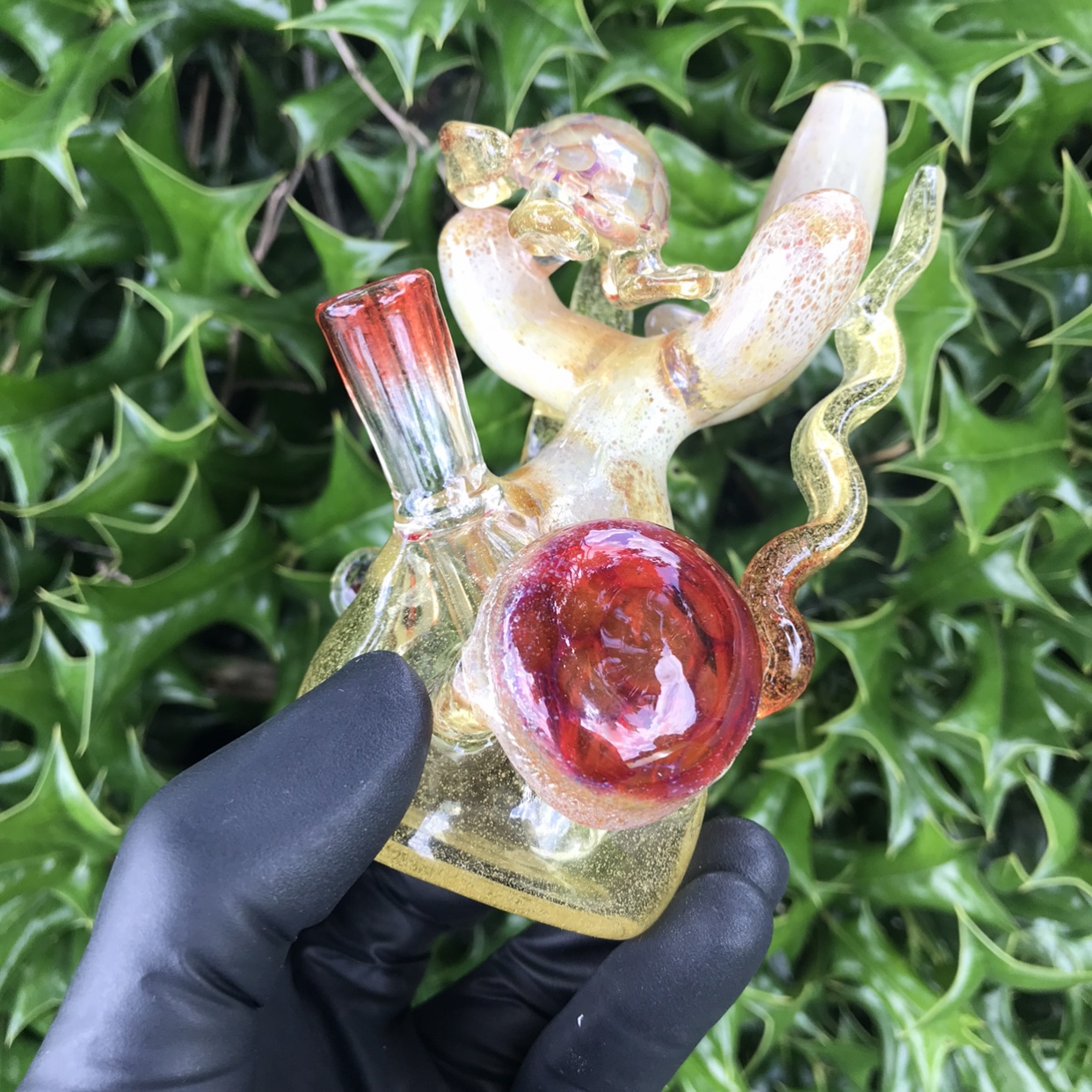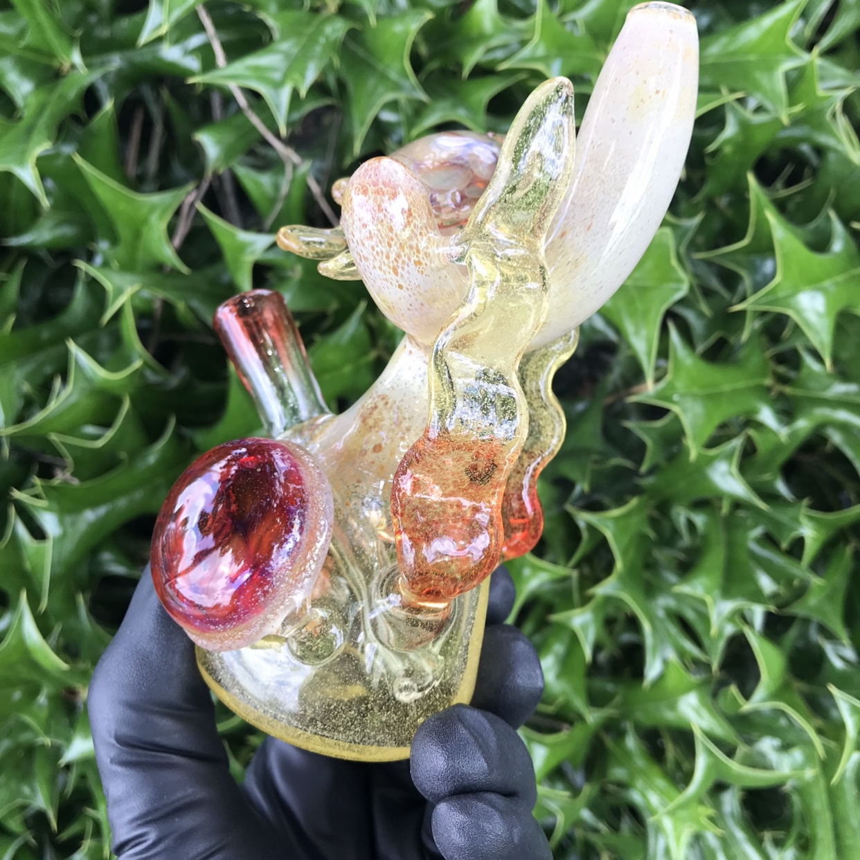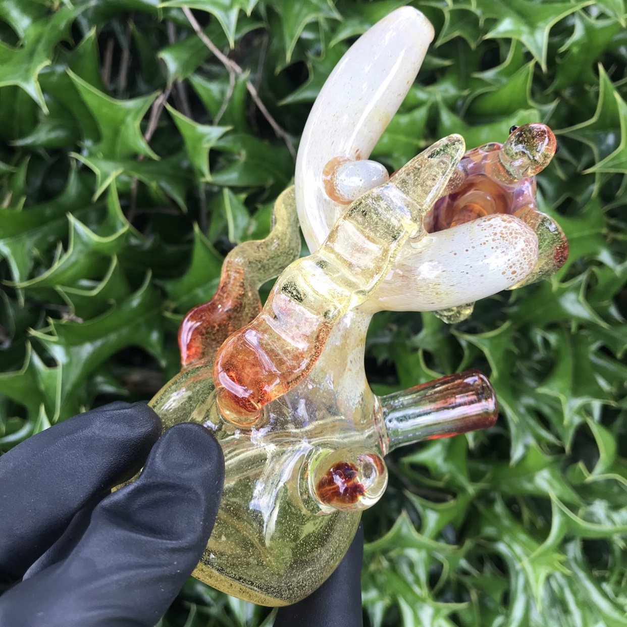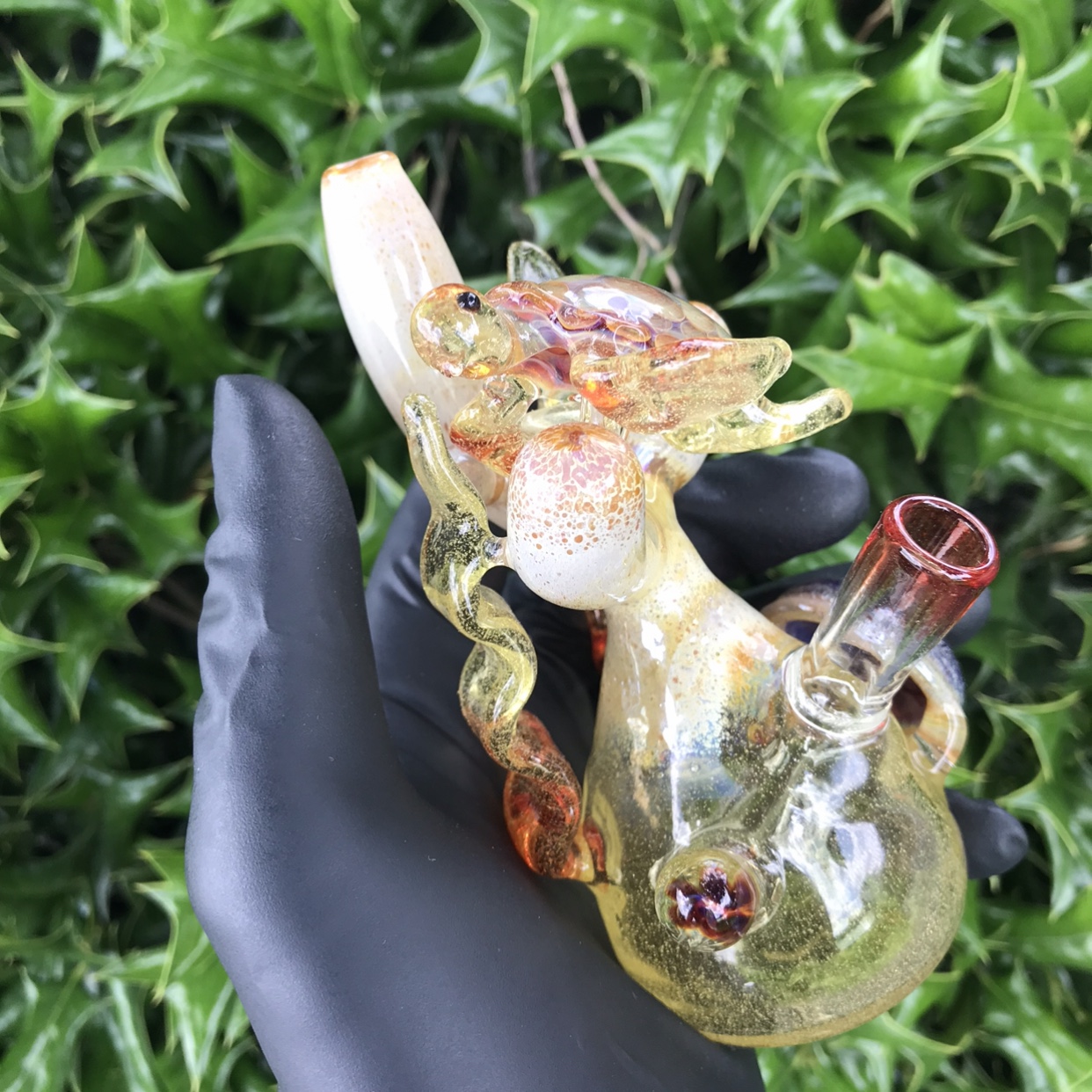 This piece from Glassical Creations is beautifully sculpted, with a turtle on the neck, and a 10mm 45 degree joint! CFL bade, along with tremendous function!
