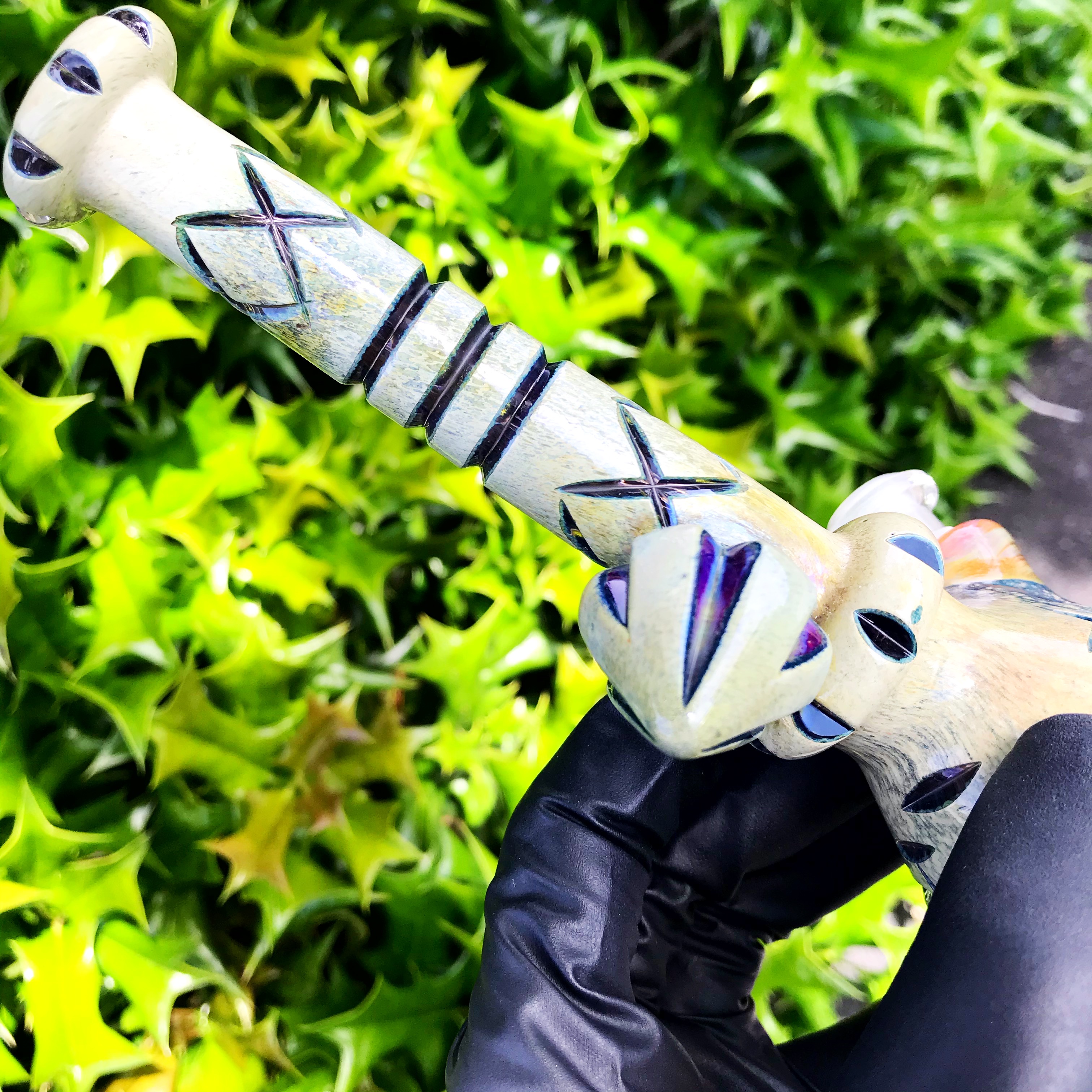This Griffin Glass Small Carved Beaker is beautifully shaped and cut, with a 10mm joint, to three hole downstem. Provides a nice chug and phenomenal function!