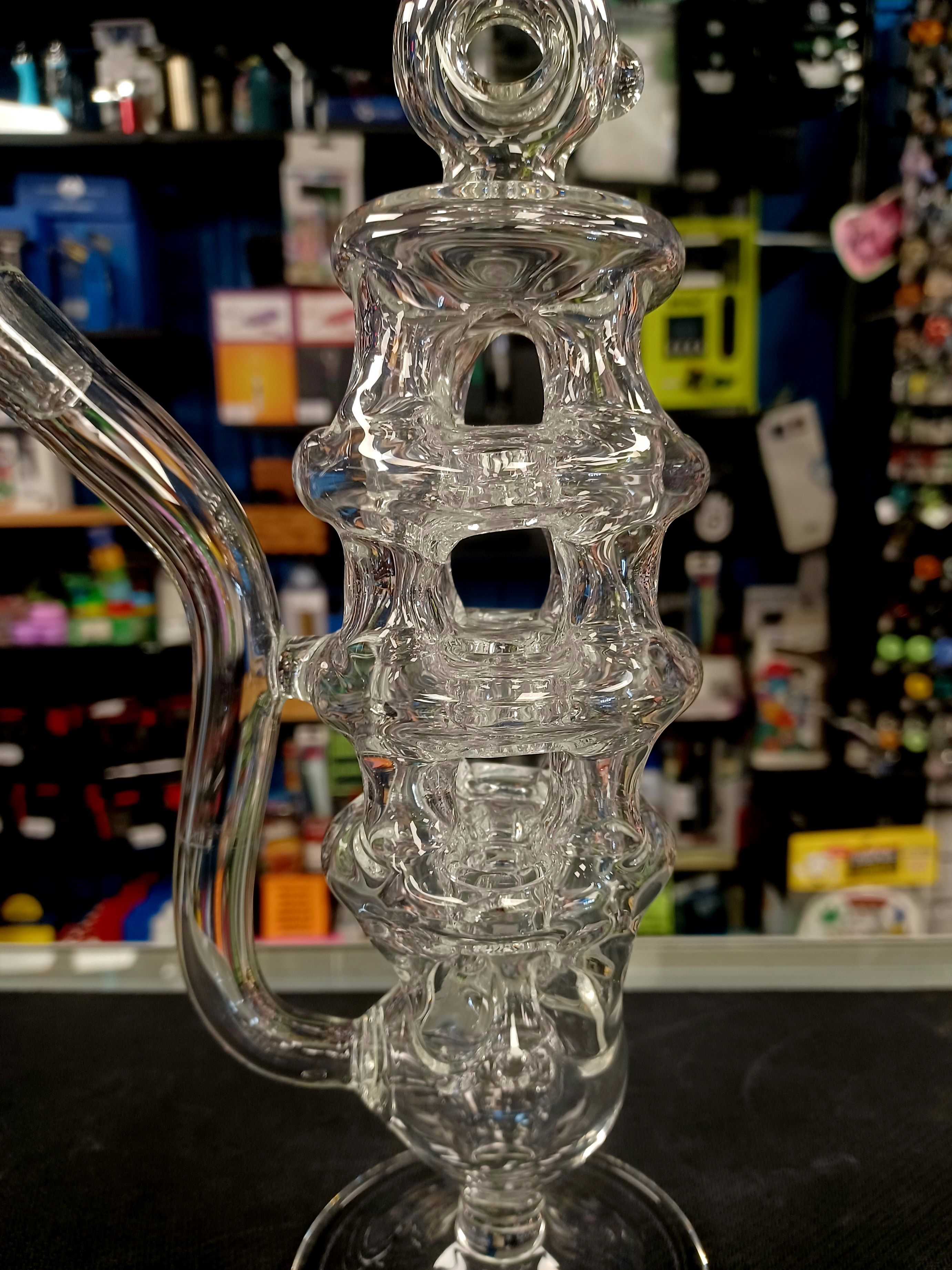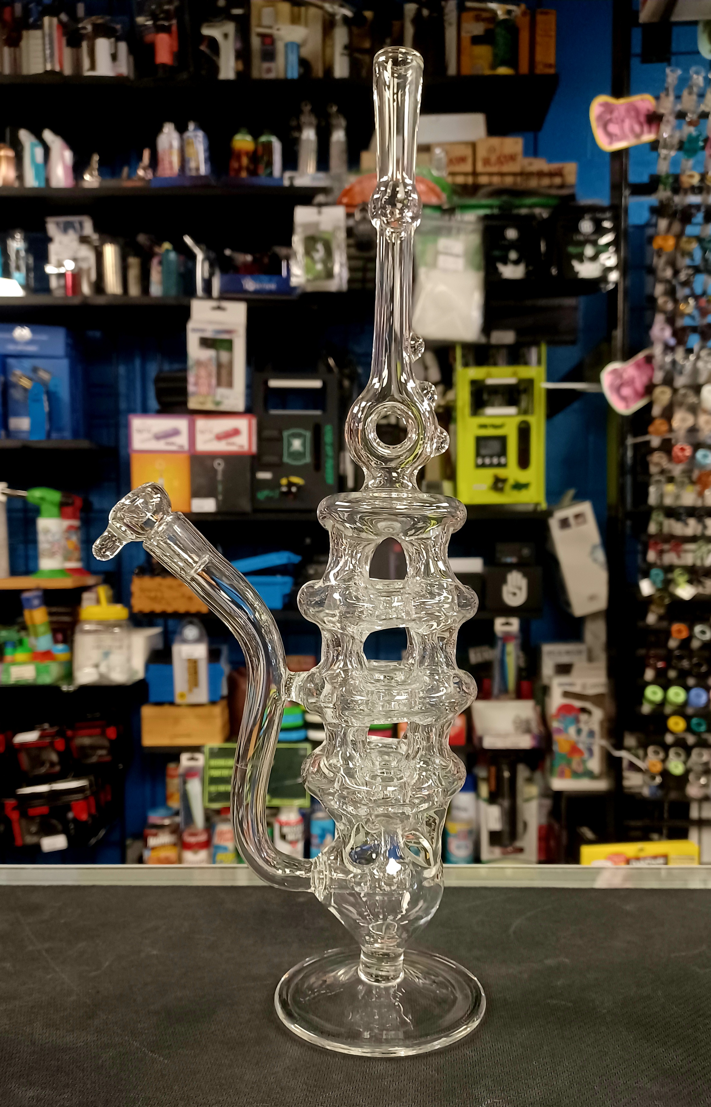 Check out this gorgeous rig from Harley Morales. If you are looking for a piece with an incredible hit, look no further! This rig absolutely rips! Size 14mm and comes with a matching slide and autographed magazine!