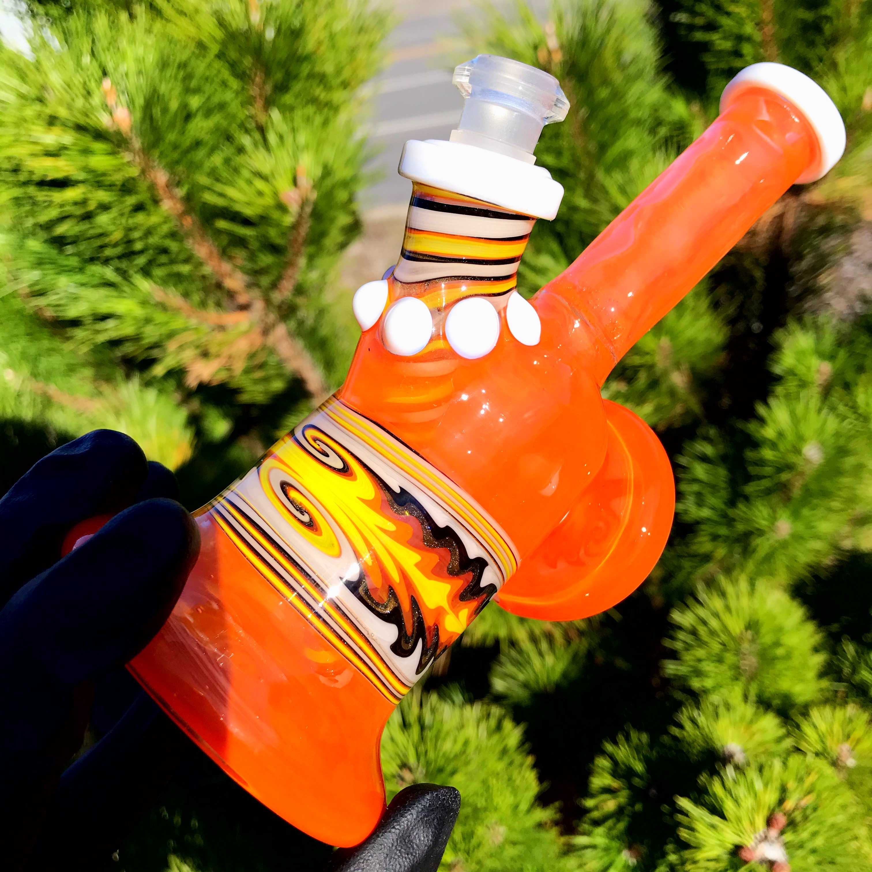 Logi Glass Hot Sauce and Star White Mini Tube. 10mm joint, with wigwag and linework sections!