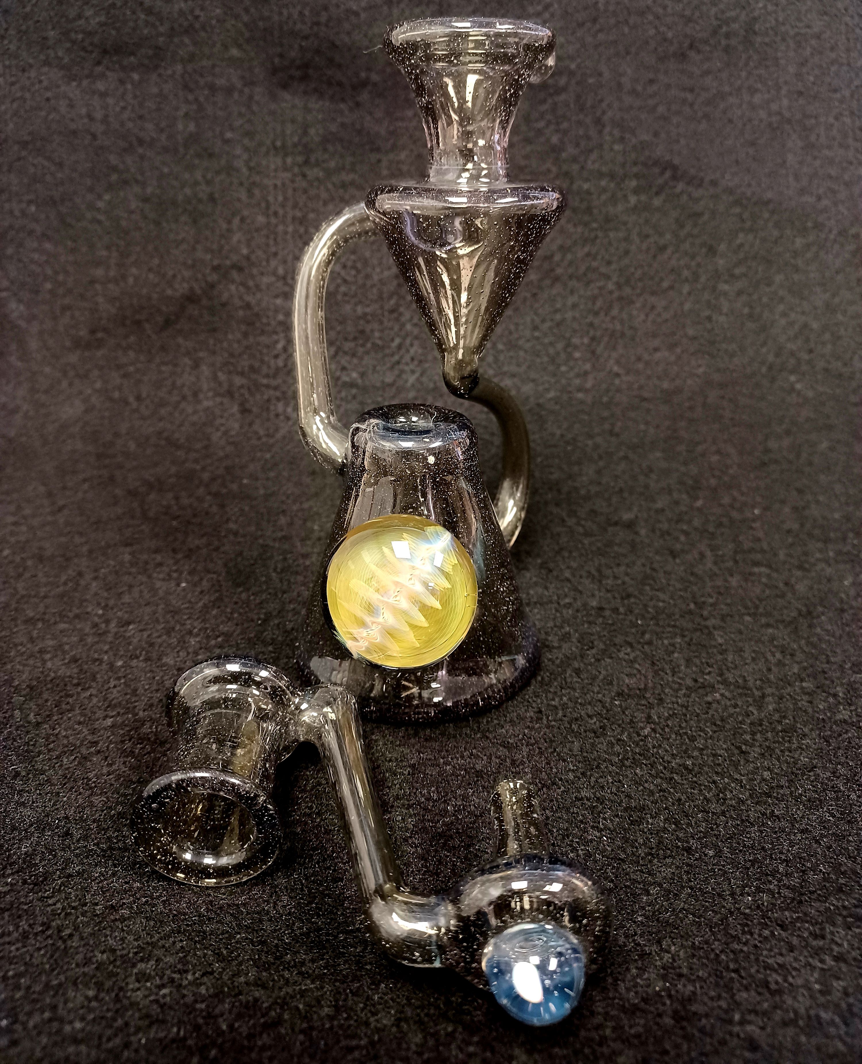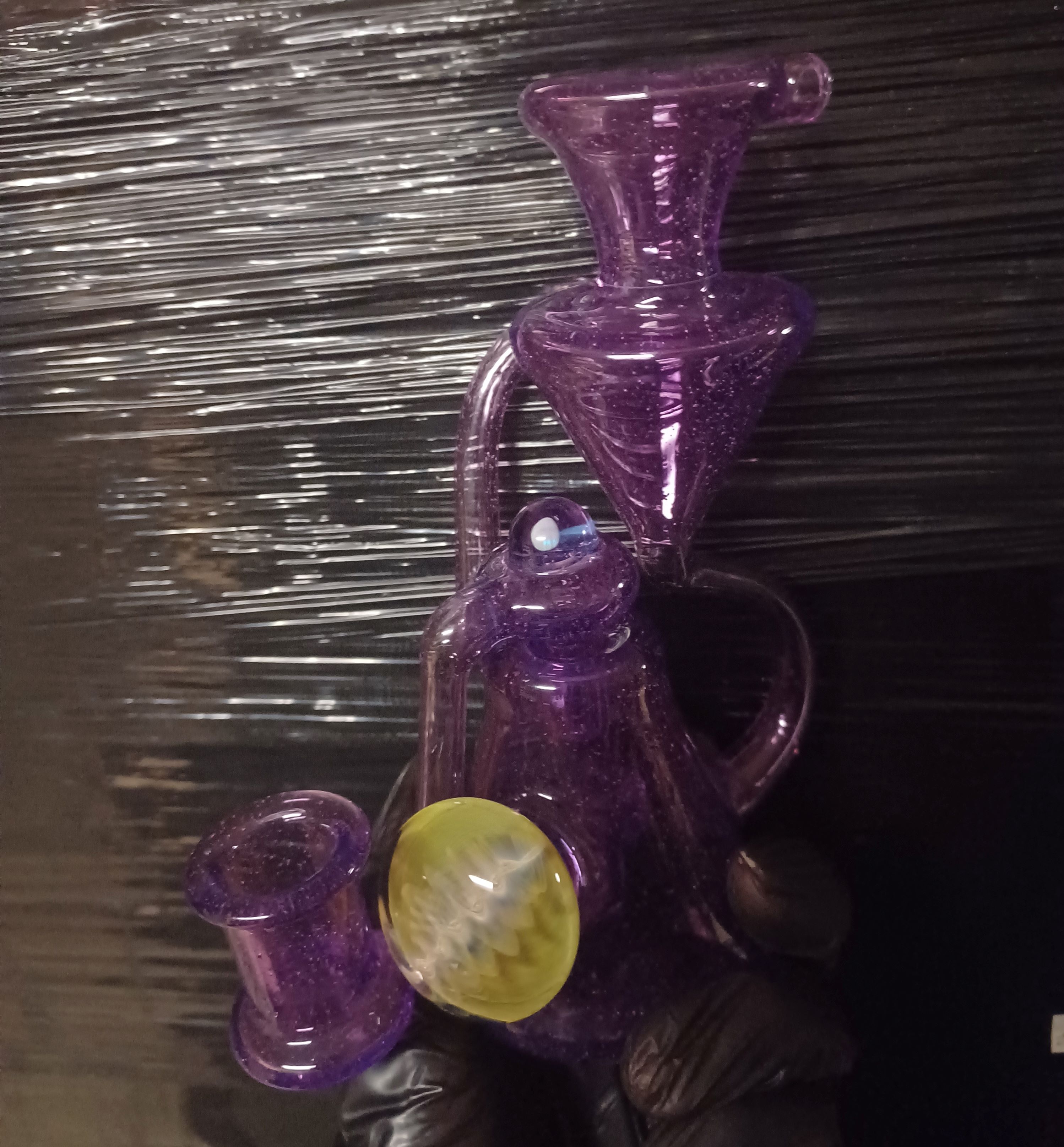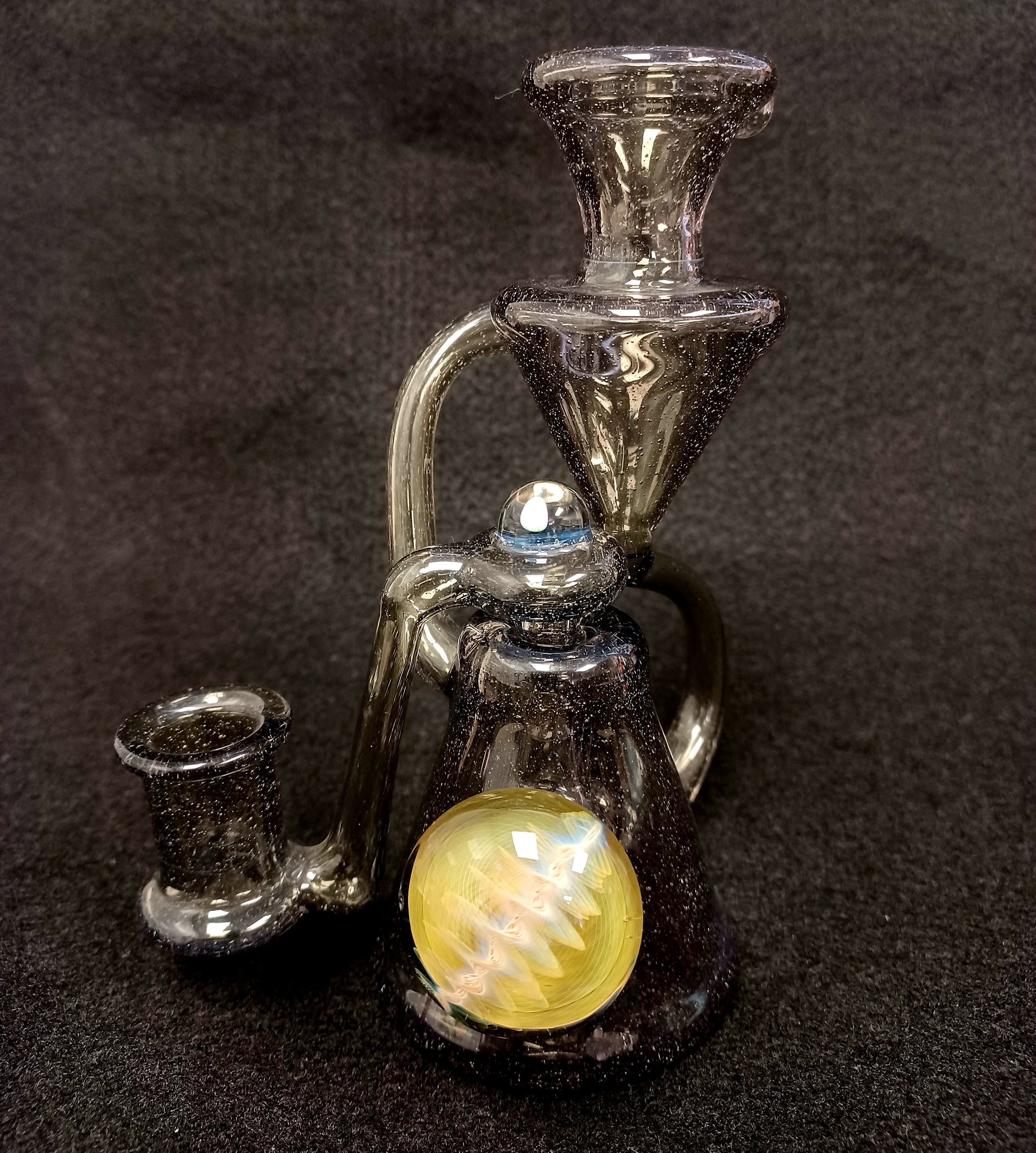 Look at this stunner! This recycler is fantastic for functionality. Made with cfl glass and has a removable drop drown. Size 10mm
