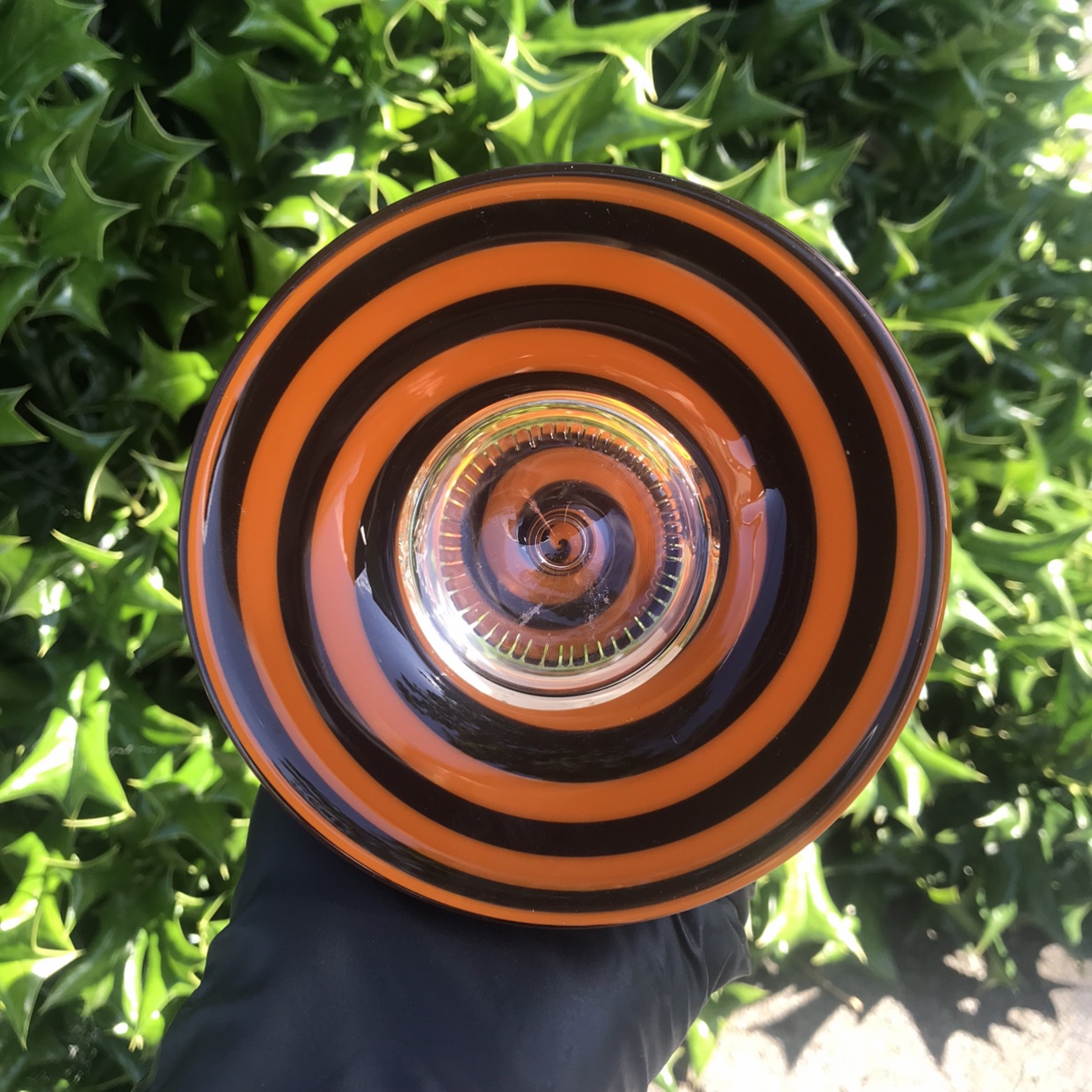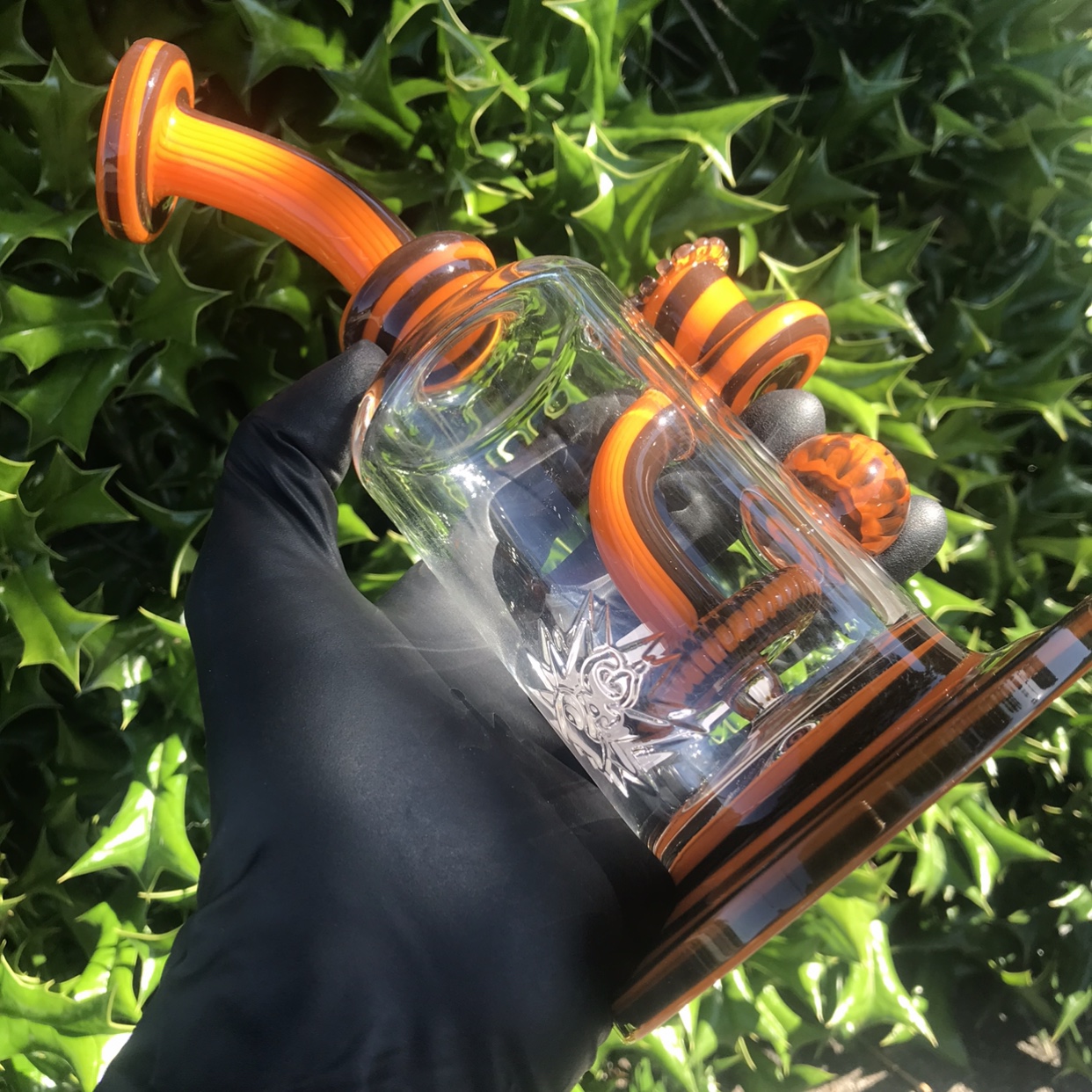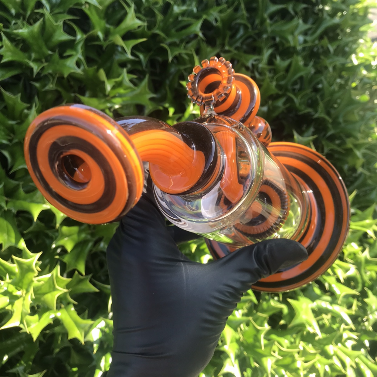 This Orange and Brown Banger Hanger from PAG consists of a fat can, worked base, and a bent neck, with phenomenal function!