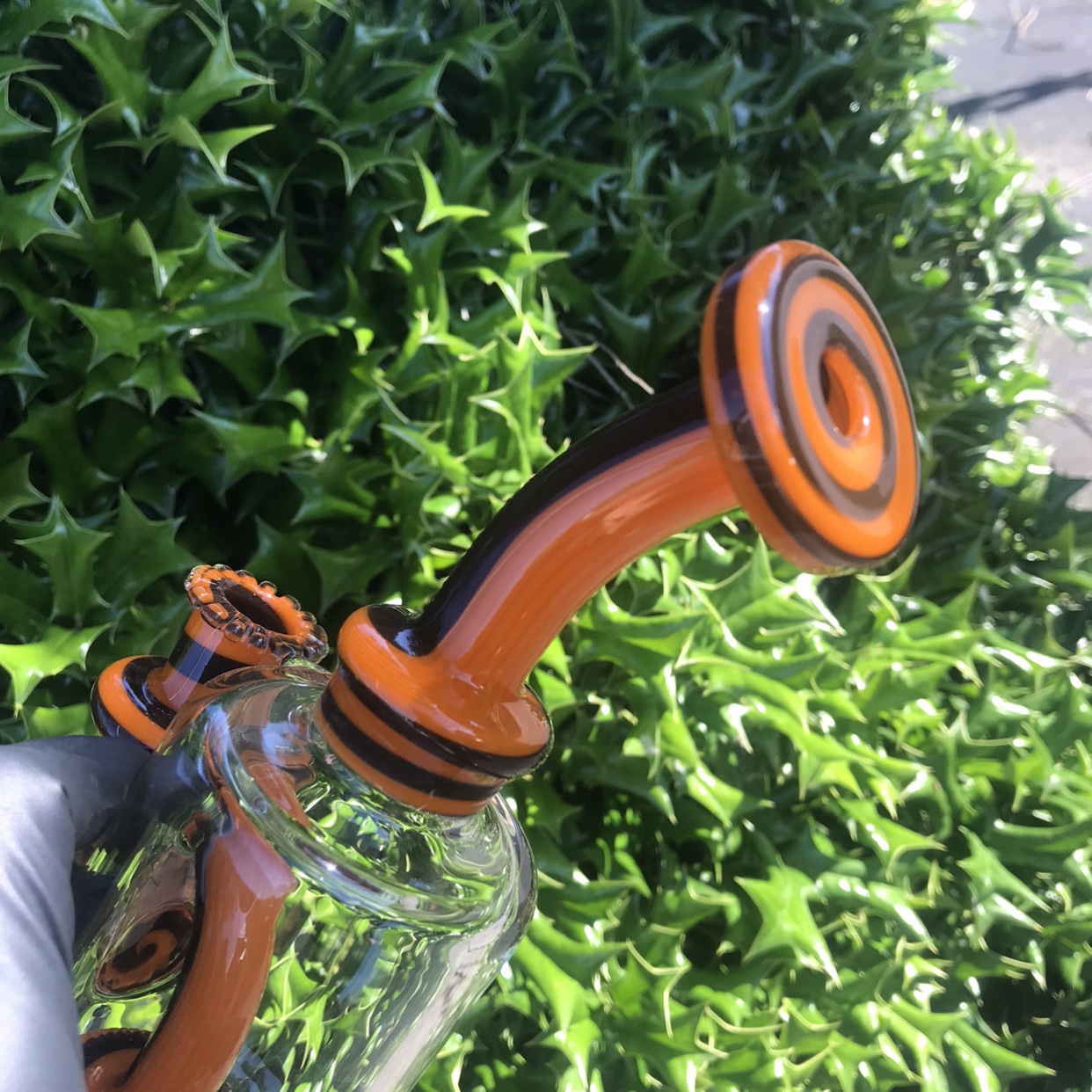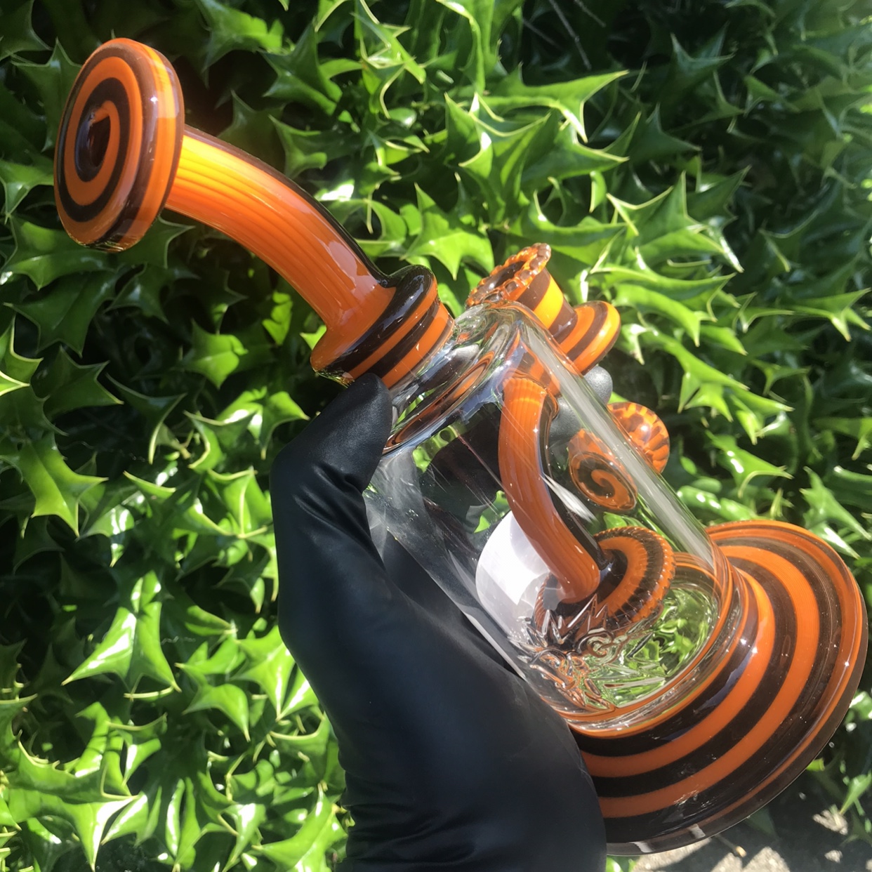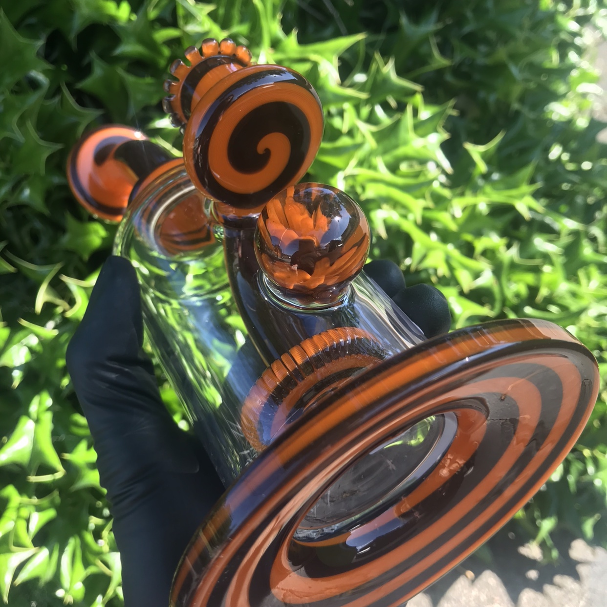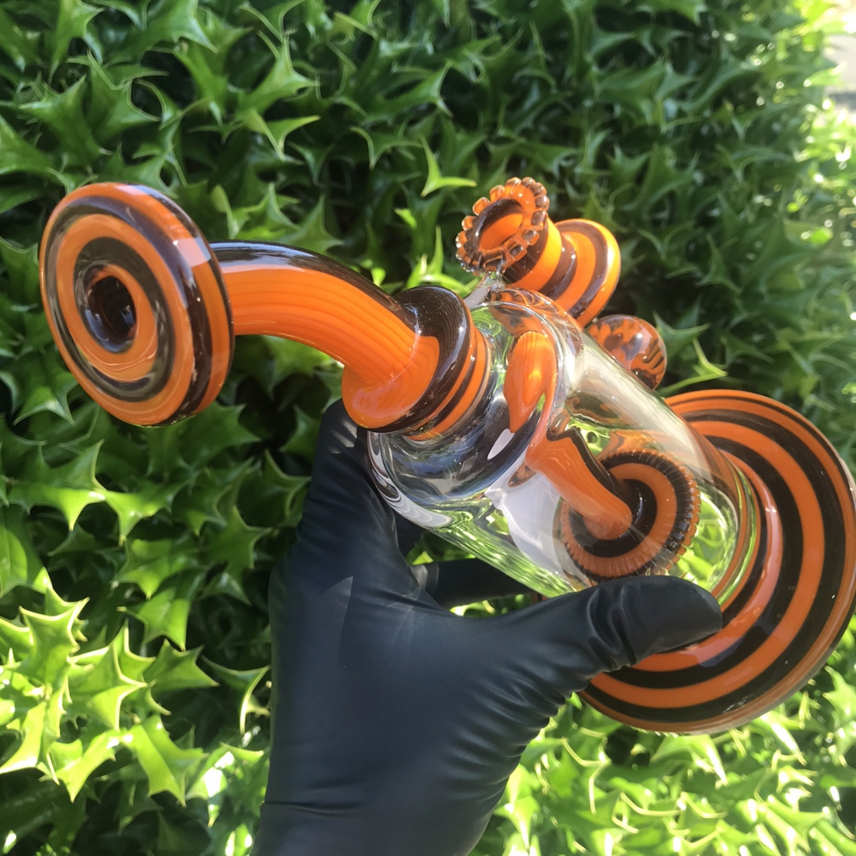 This Orange and Brown Banger Hanger from PAG consists of a fat can, worked base, and a bent neck, with phenomenal function!