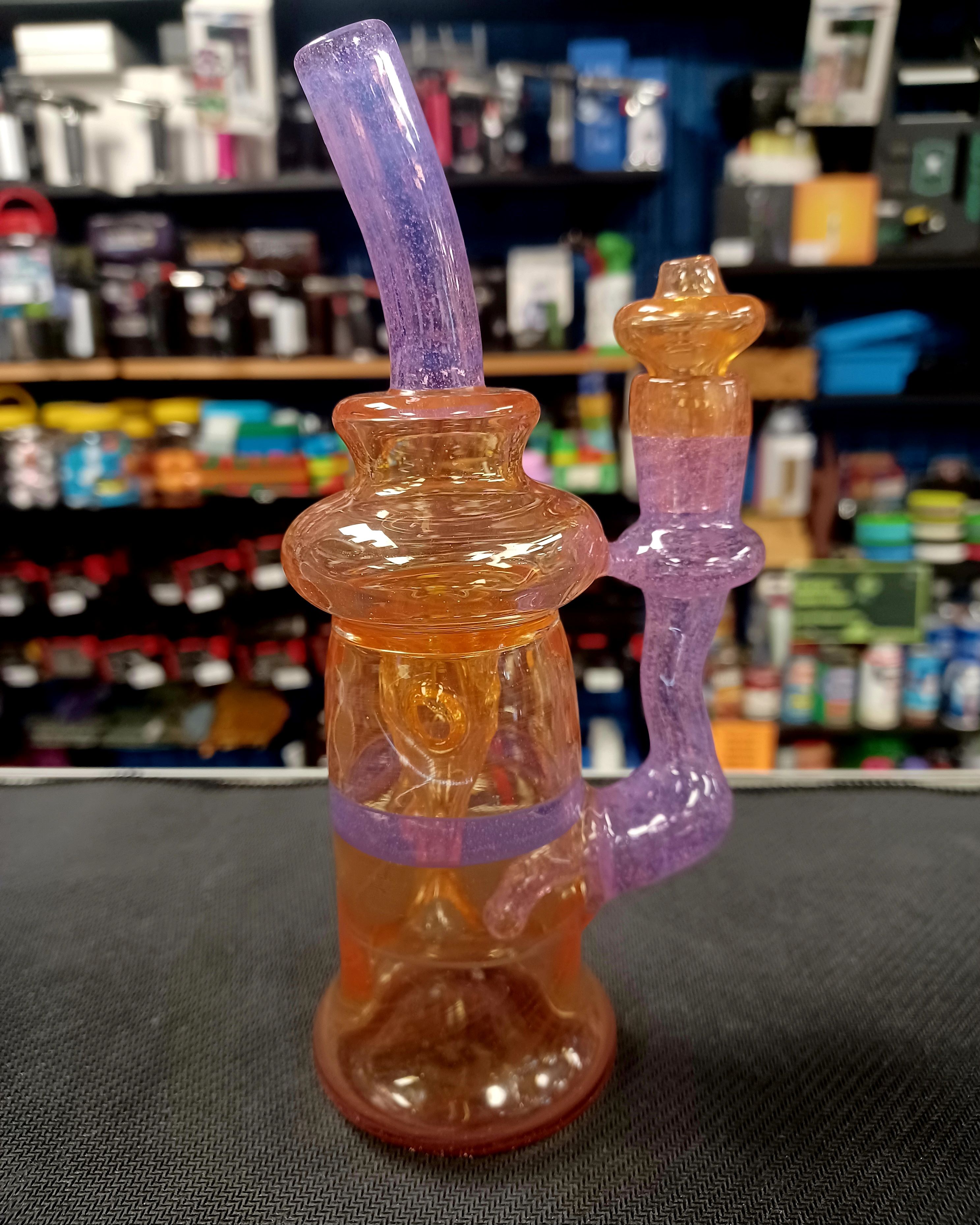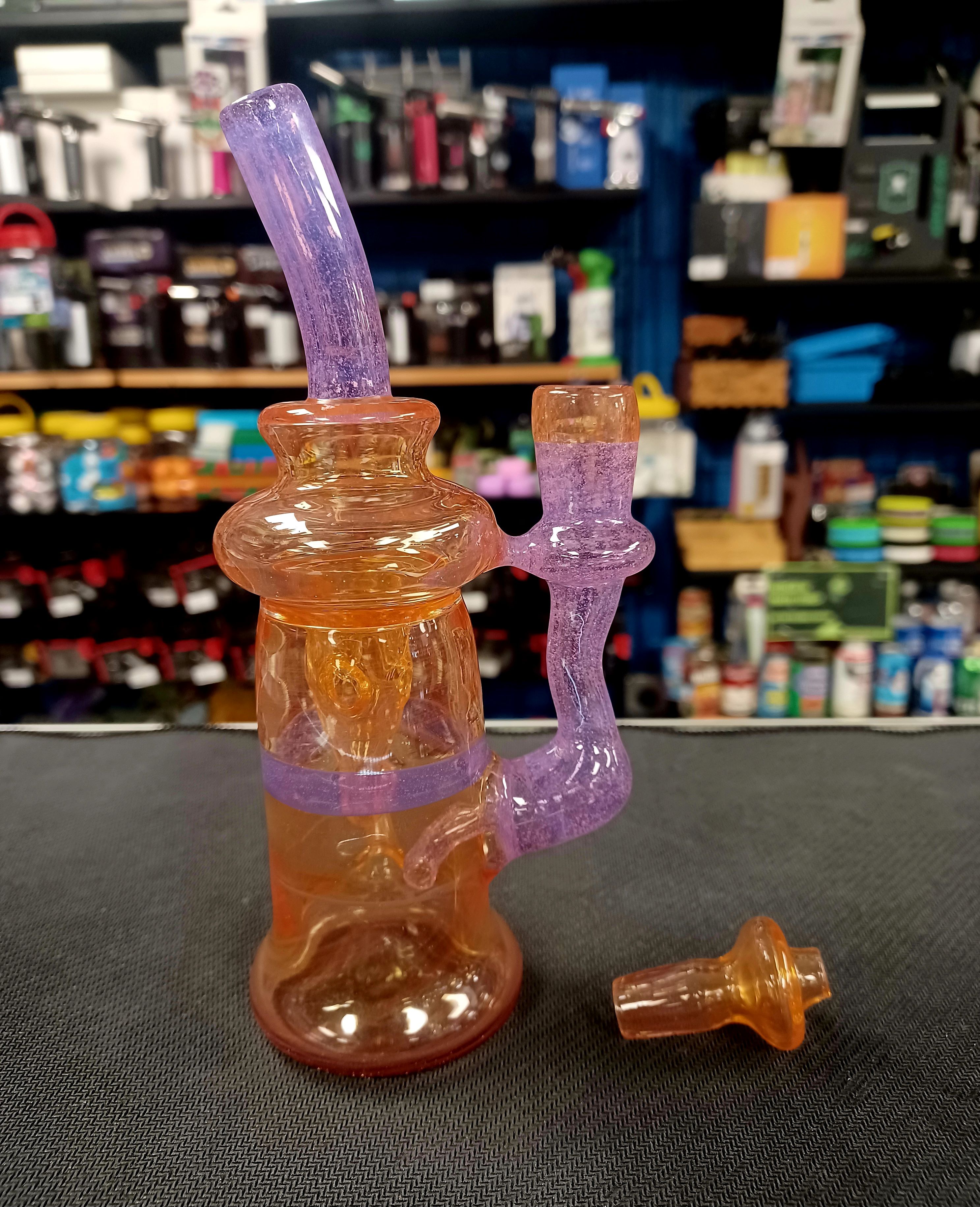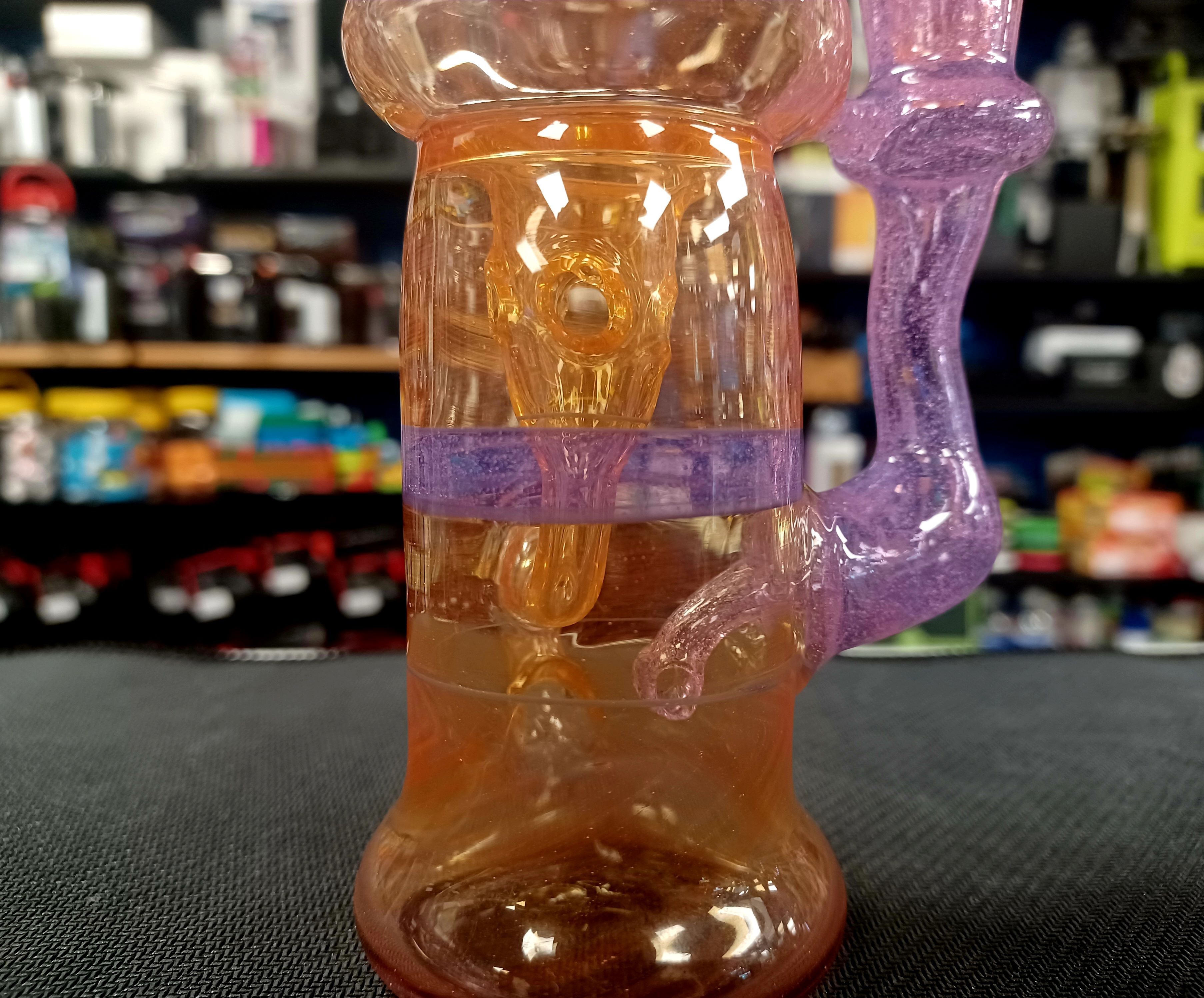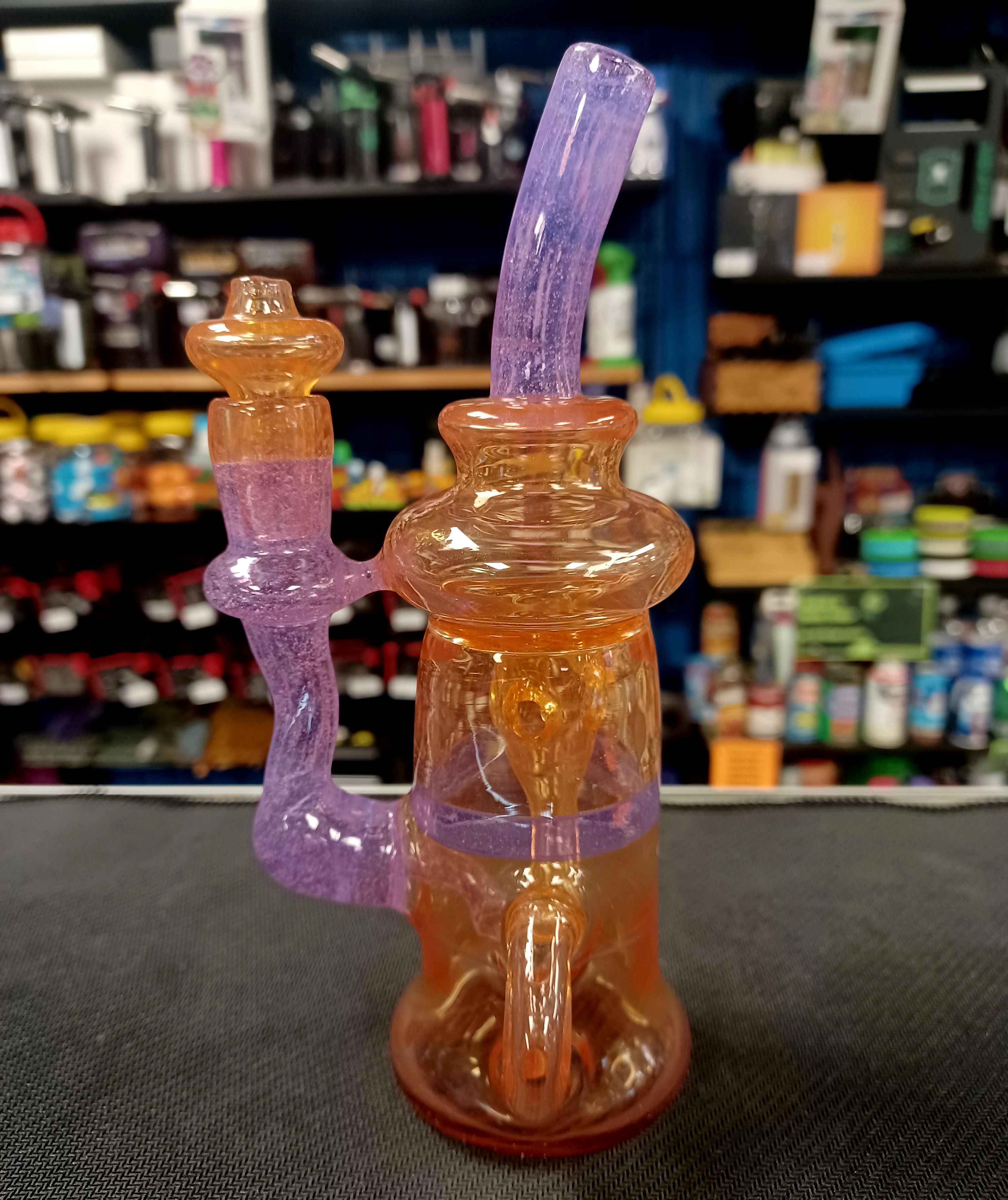 This rig from Piratt Glass is incredible! With its incycler perc, the function is killer on this piece! Comes with a plug and is size 14mm.