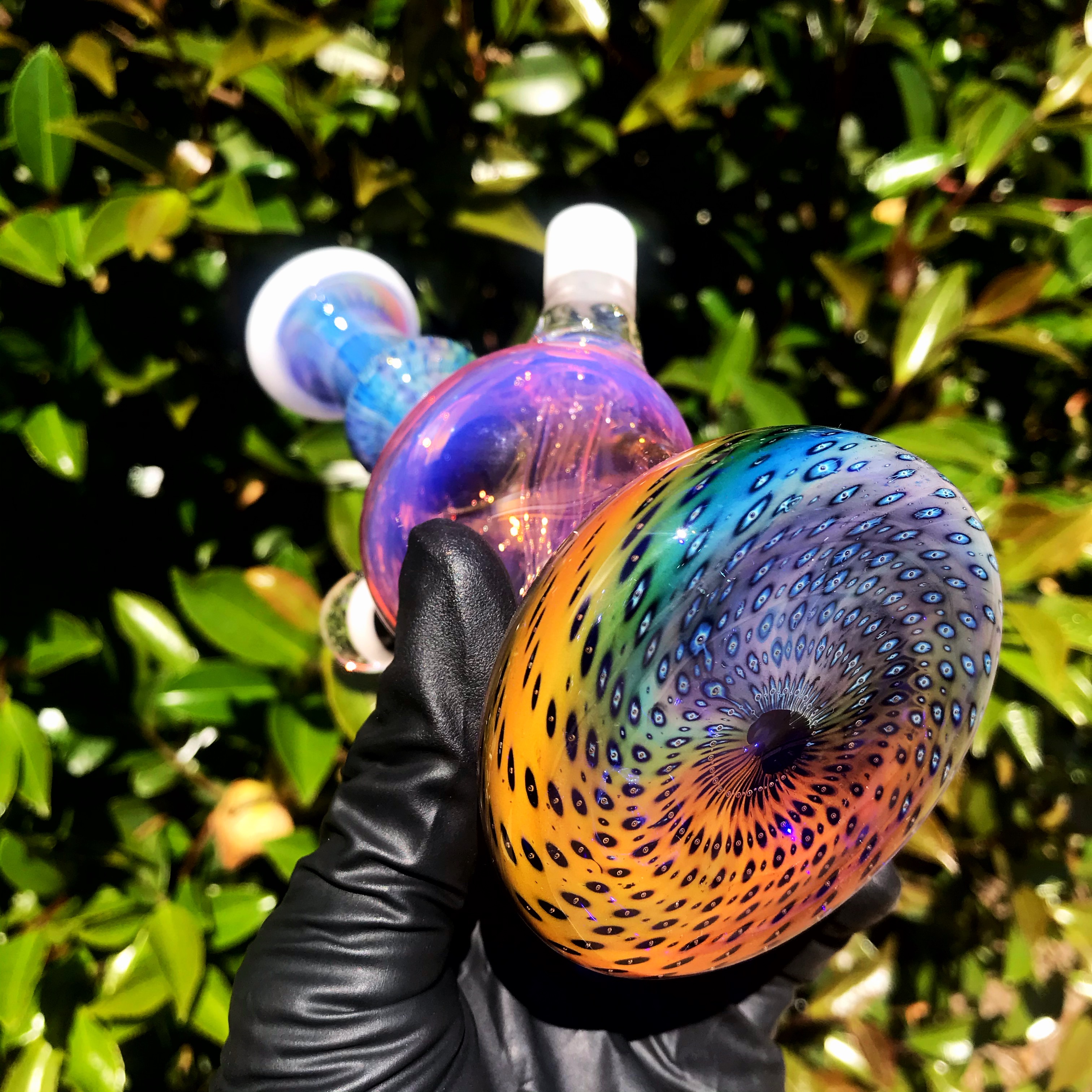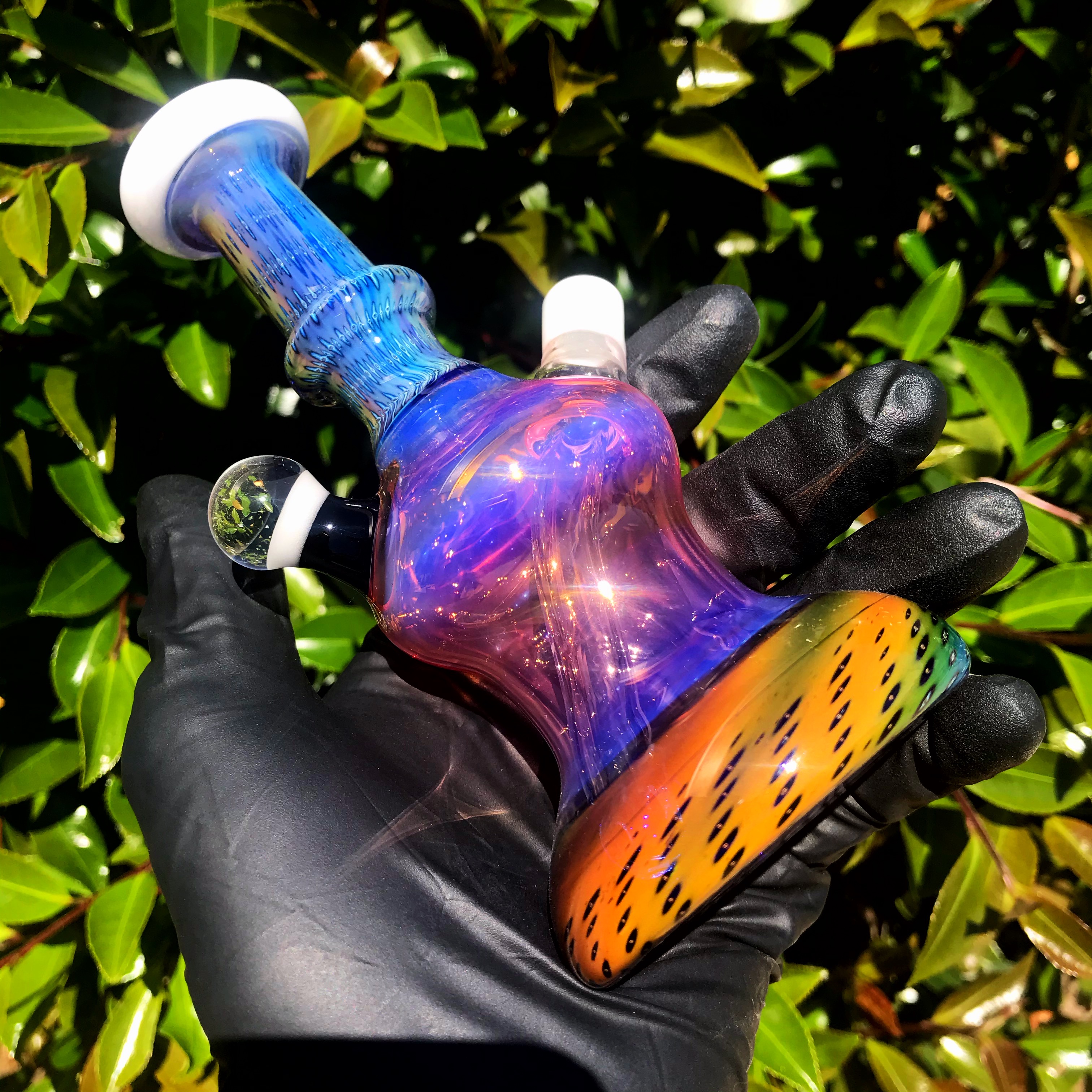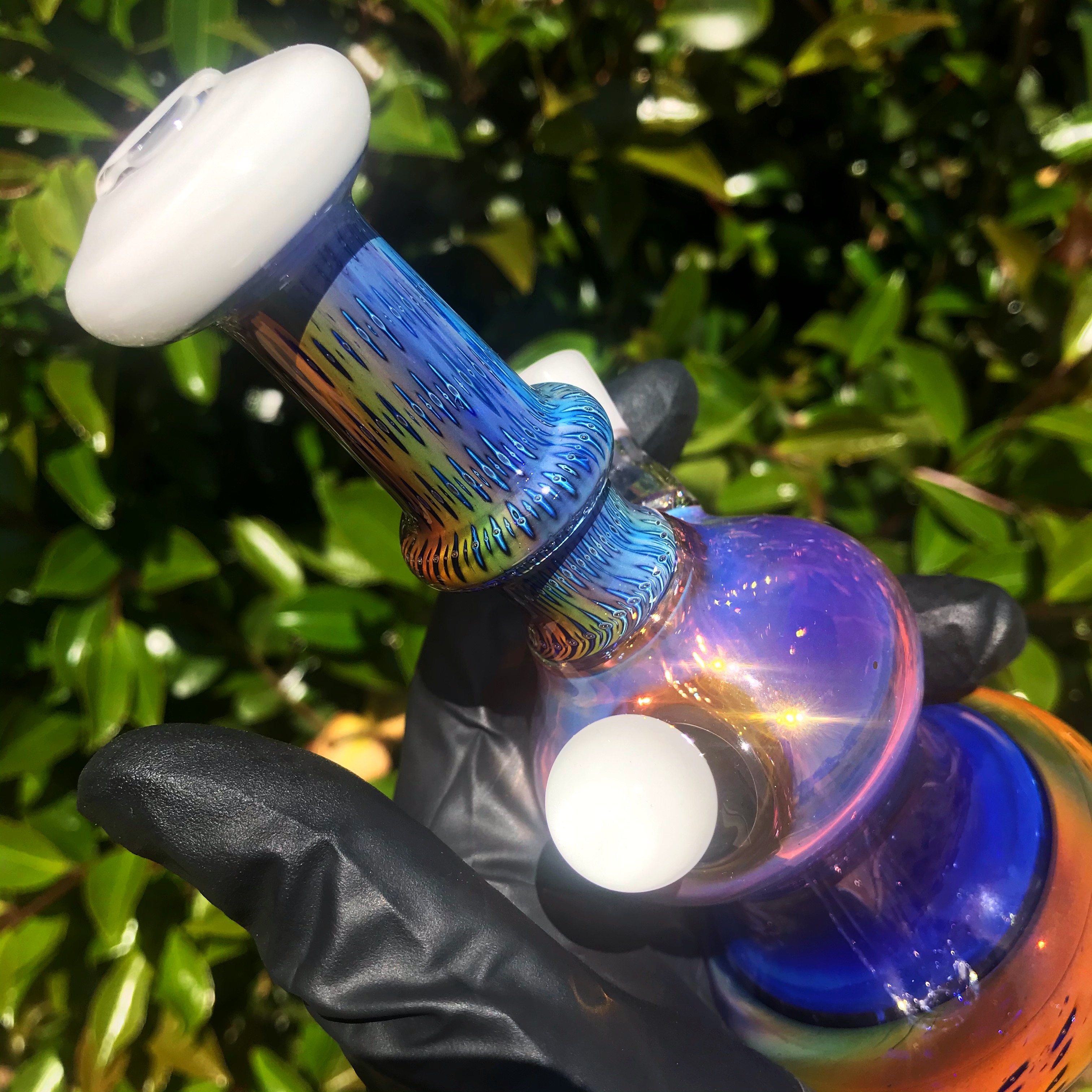 This rig from Sand Spirit Glass is amazingly put together with fumed bubble trap, and beautiful white accents!