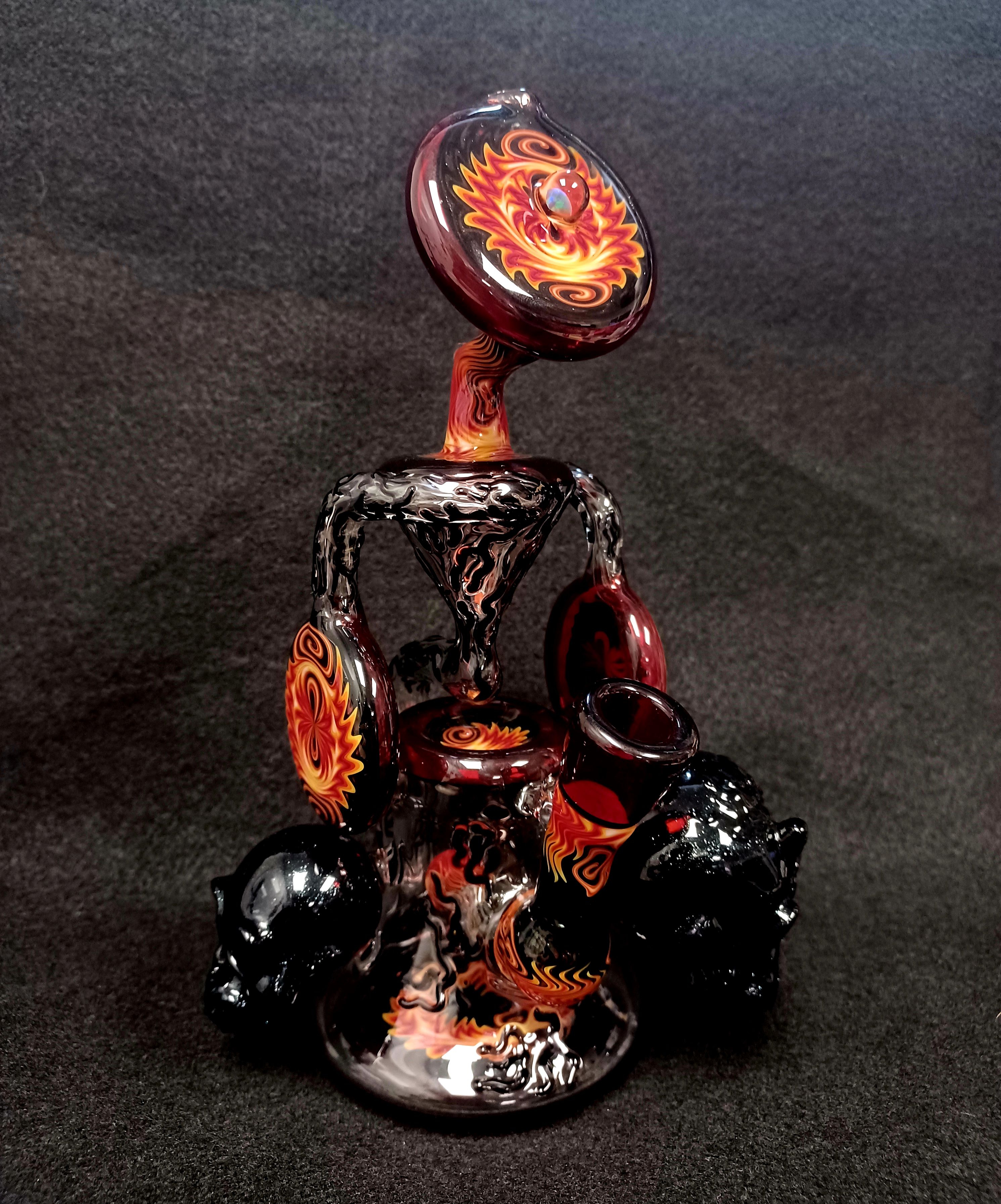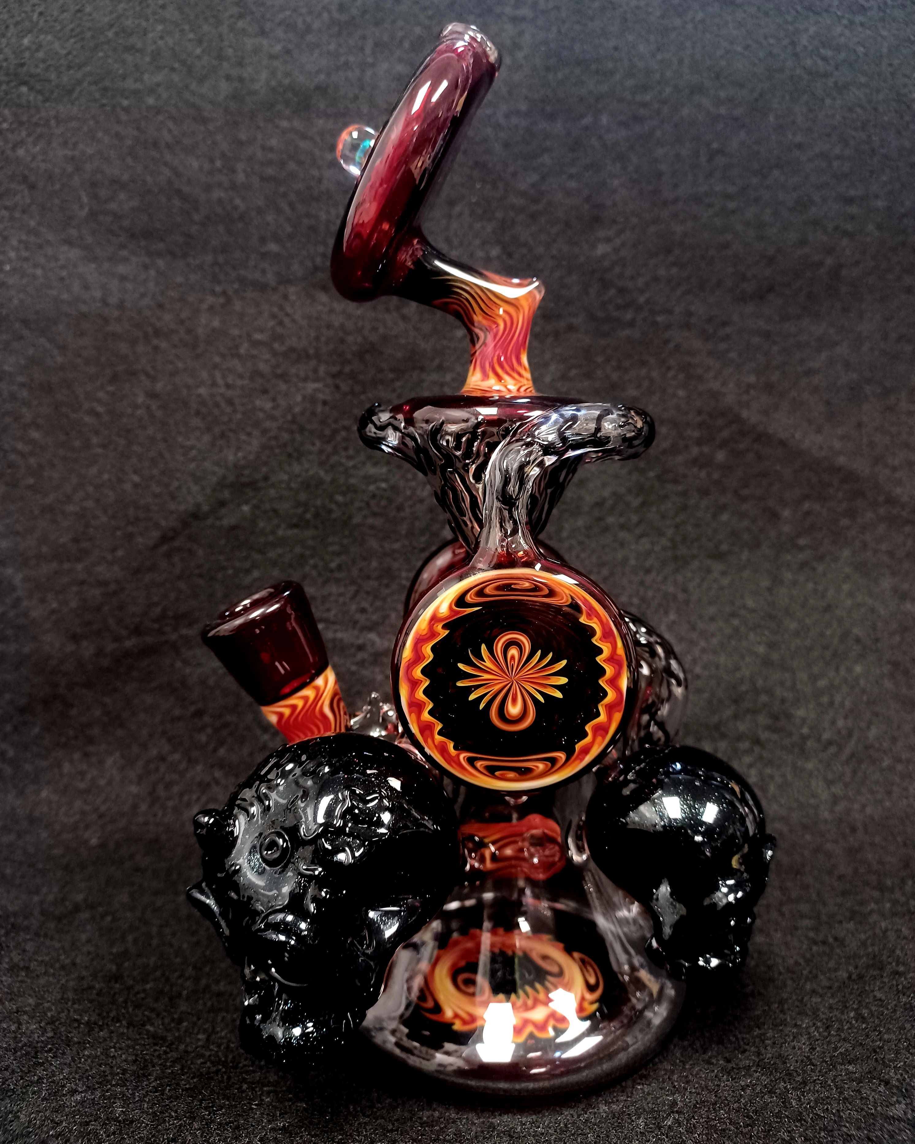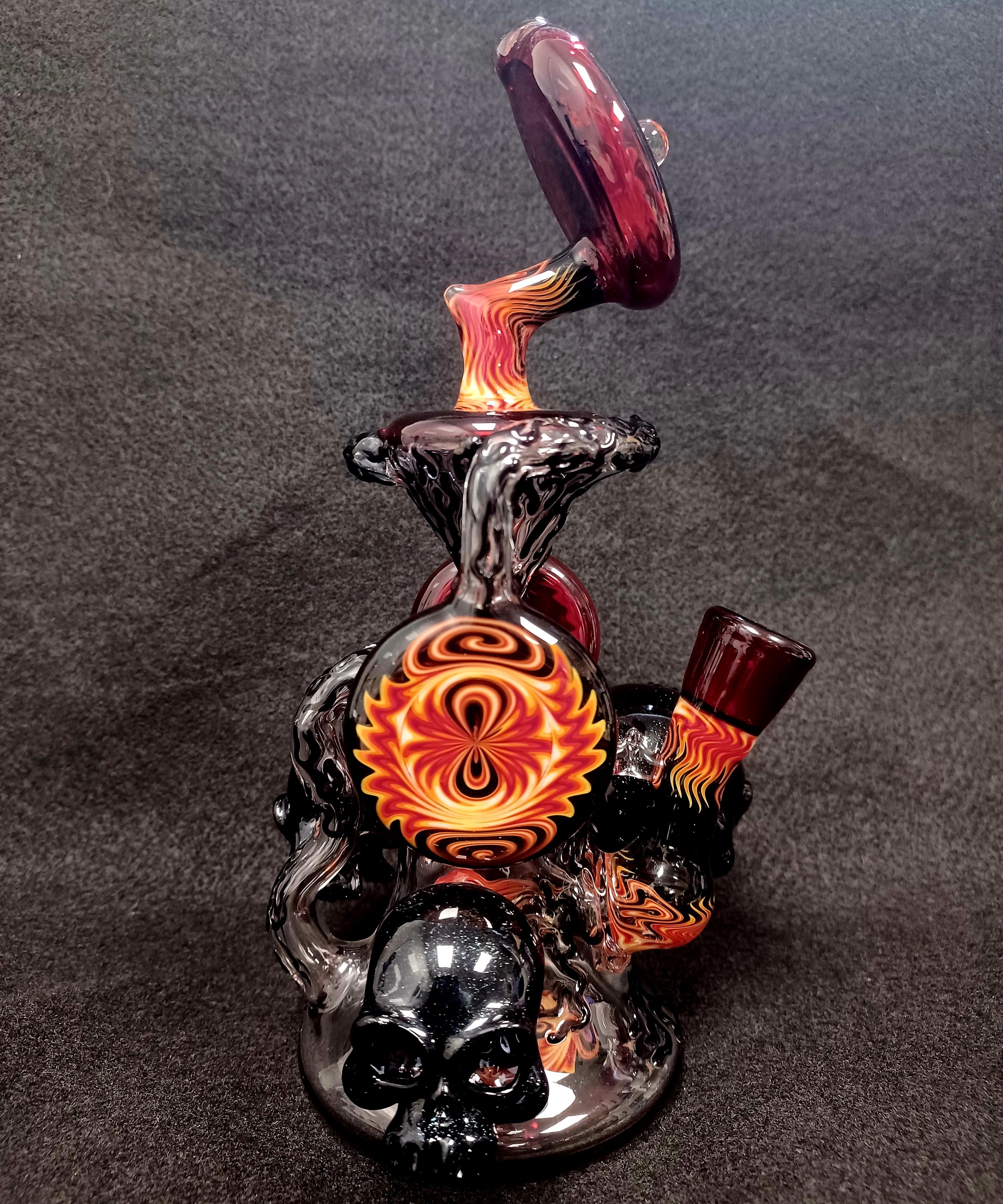 Check out this stunning recycler from Sean Williams! With its double uptake, this piece guarantees to rip! You definitely can’t beat all that beautiful wig wag work and skulls on the piece! Add this recycler to your collection today!