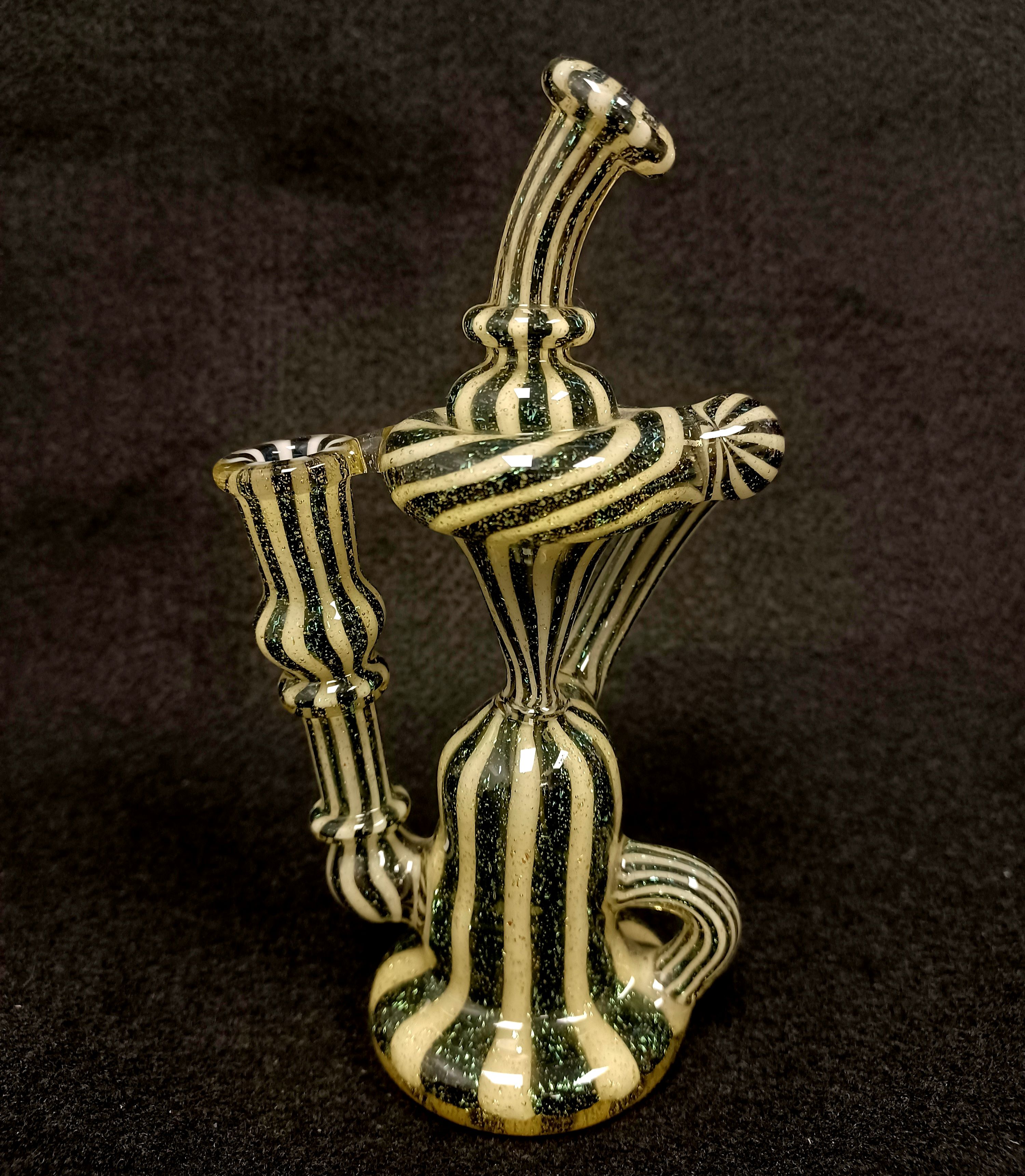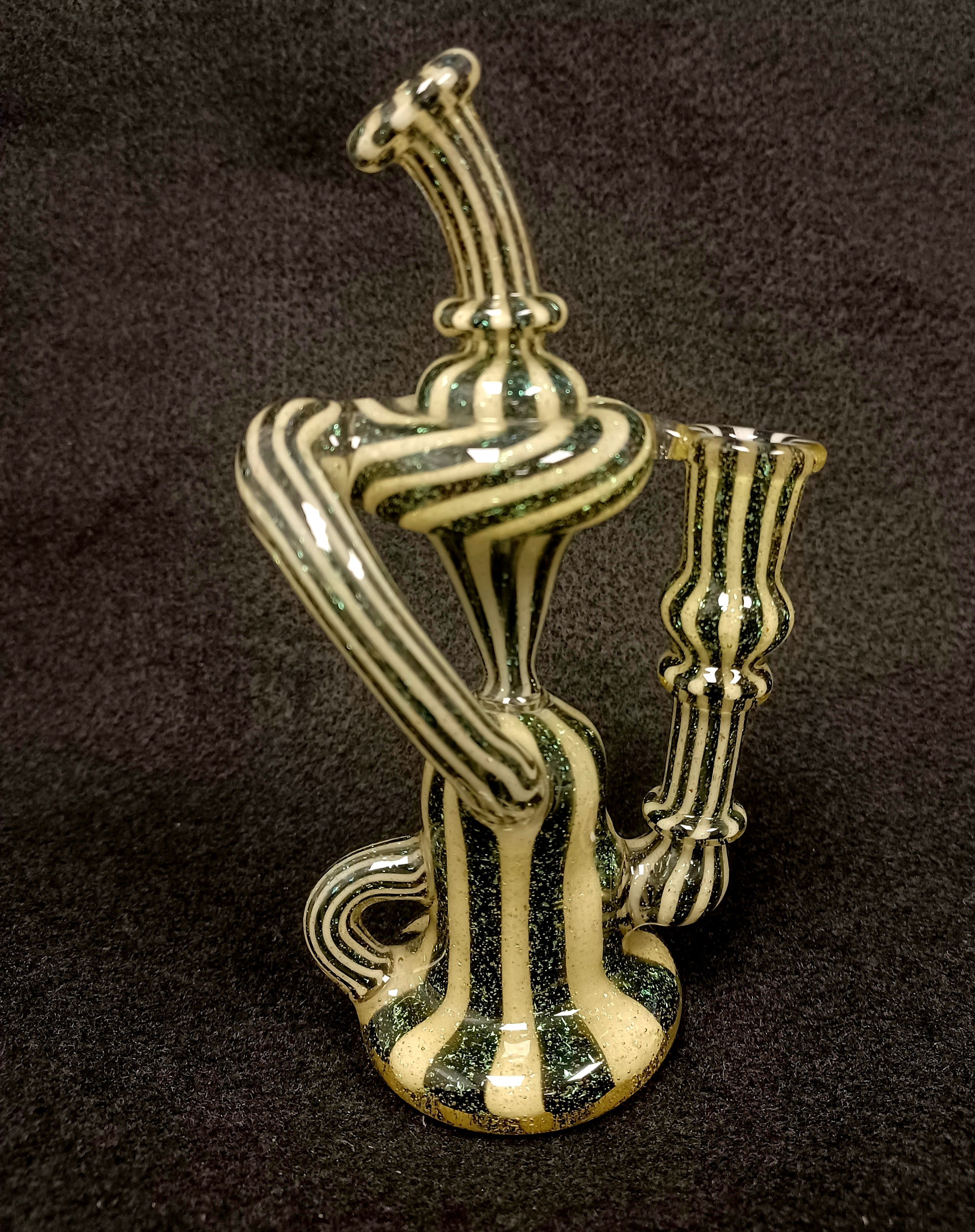 Look at this recycler from Shane Smith Glass! Beautiful dichro and linework worked all throughout this piece! This rig hits like a dream! Size 10mm