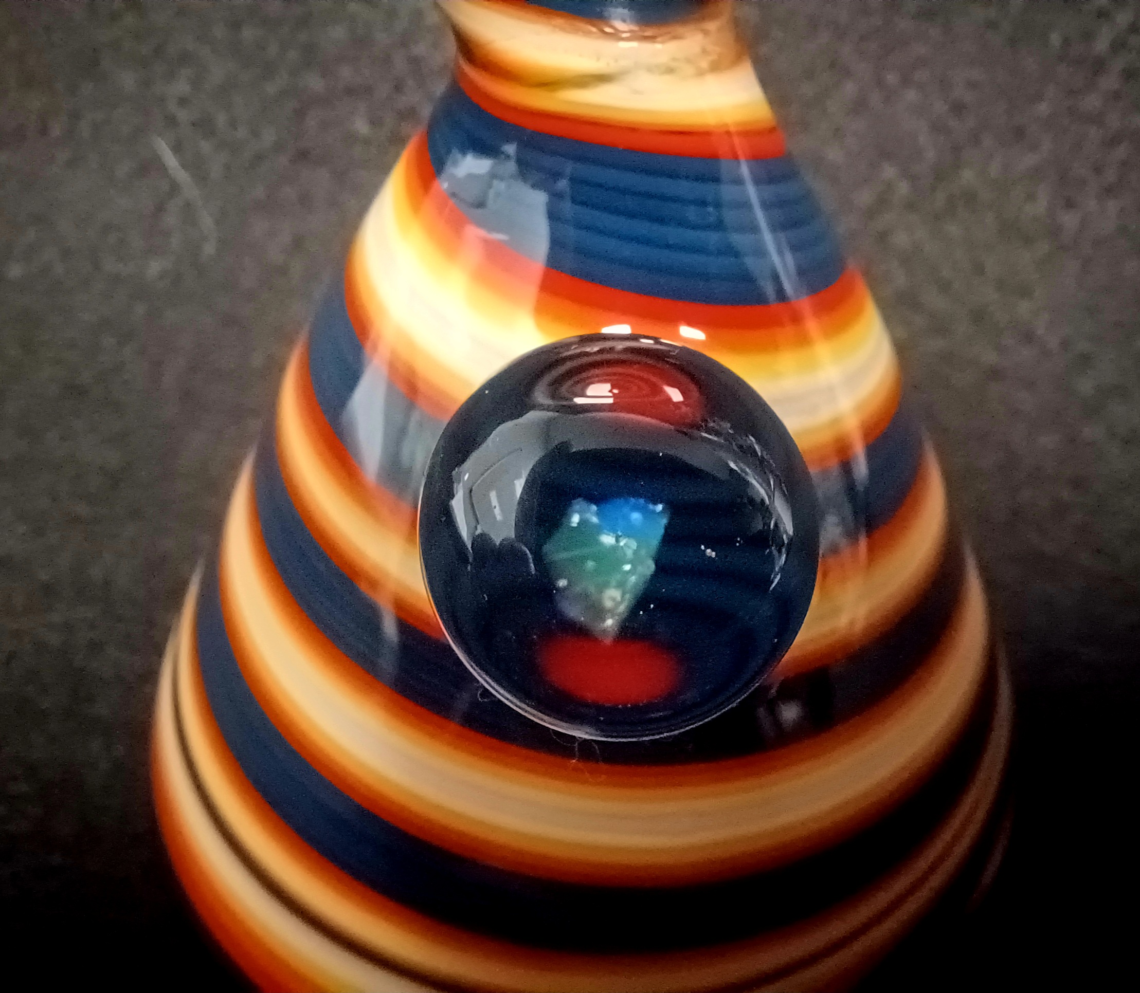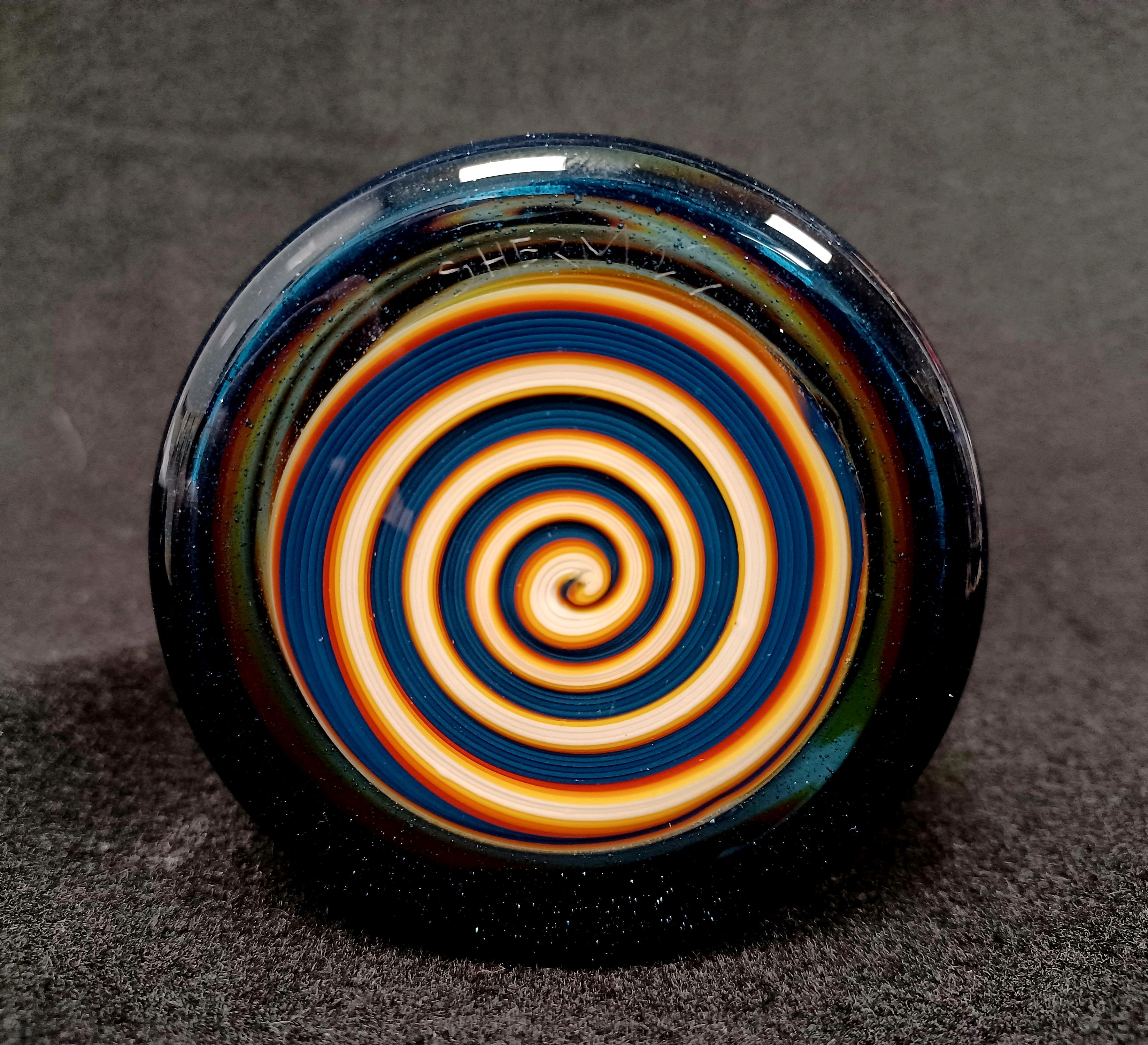 Here we have a killer disc rig from Sherm Glass. Check out that wig wag work on this fire and ice piece! Can’t go wrong with this guy! Size 14mm