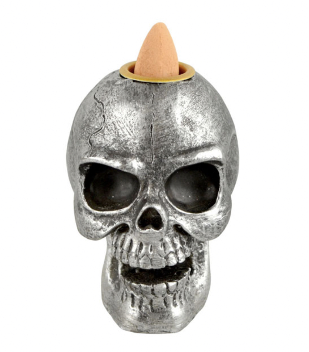 This metallic like skull is specifically made for Backflow cones… pair with your favorite scent and watch the smoke waterfall out of the spooky skull!