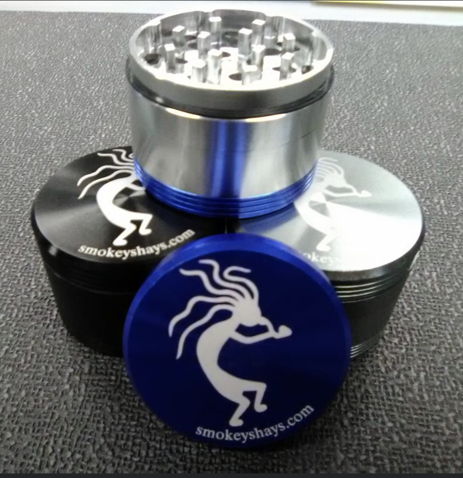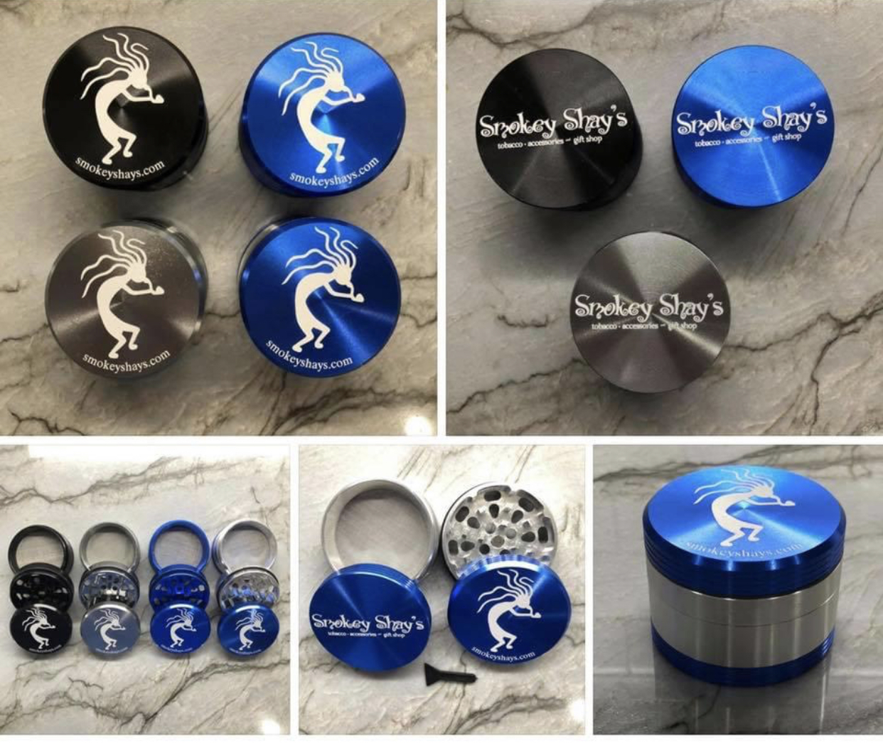 Smokey Shay’s custom grinders are a 4pc stage Grinder with screen and pollen catch. Grinder is approximately 2 inches across and is the perfect standard Grinder. Strong teeth and perfectly machined threads keep this grinder moving smoothly without hangup. Top cover stays securely in place by internal magnet. Scraper is included and fits securely into the bottom pollen pan! Give one of our custom Smokey Shay’s Smokapelli grinders a try! 4 color options available!