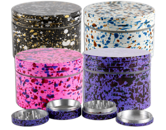 Durable 4pc Aluminum Grinder with a cool paint splatter design.
