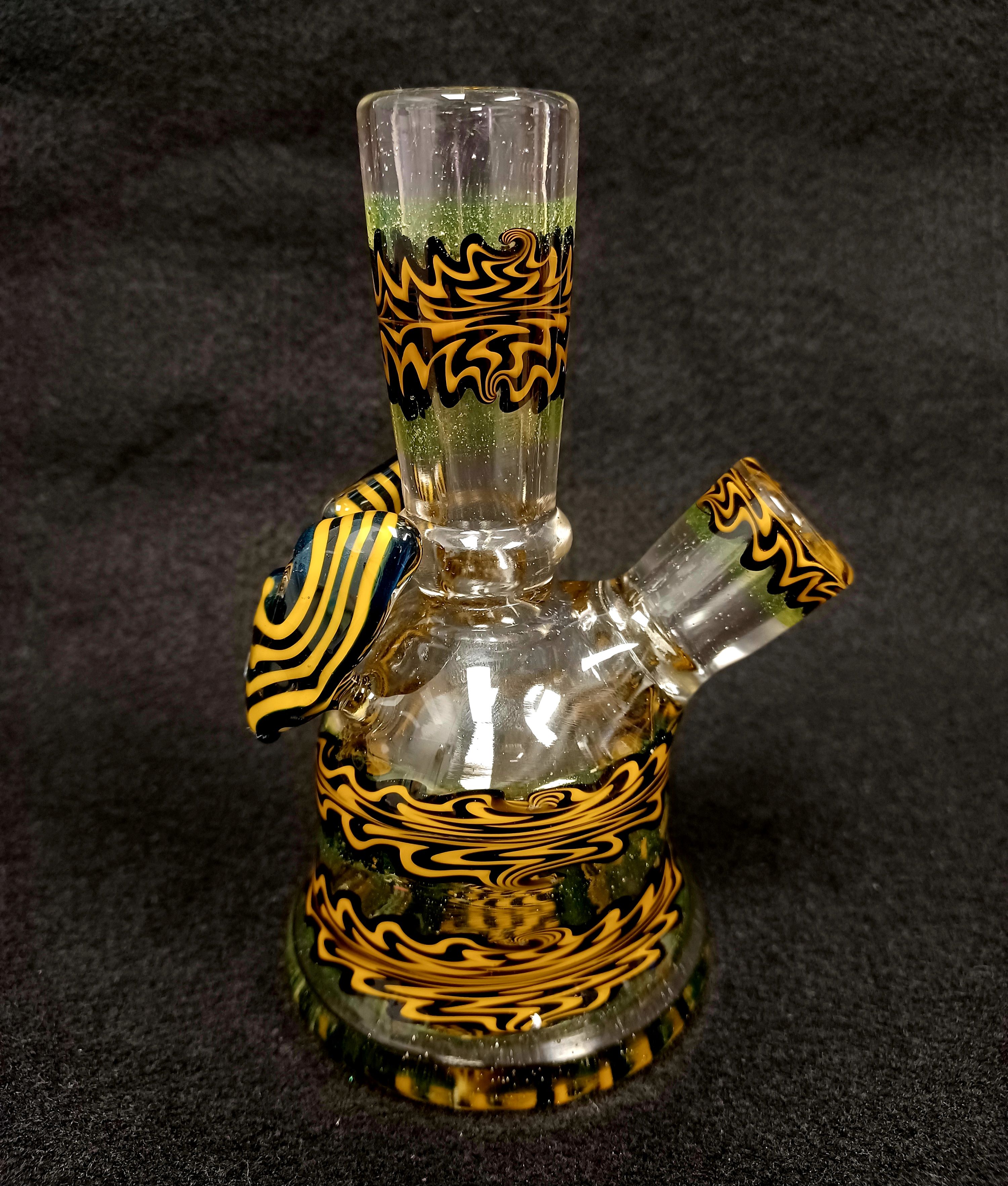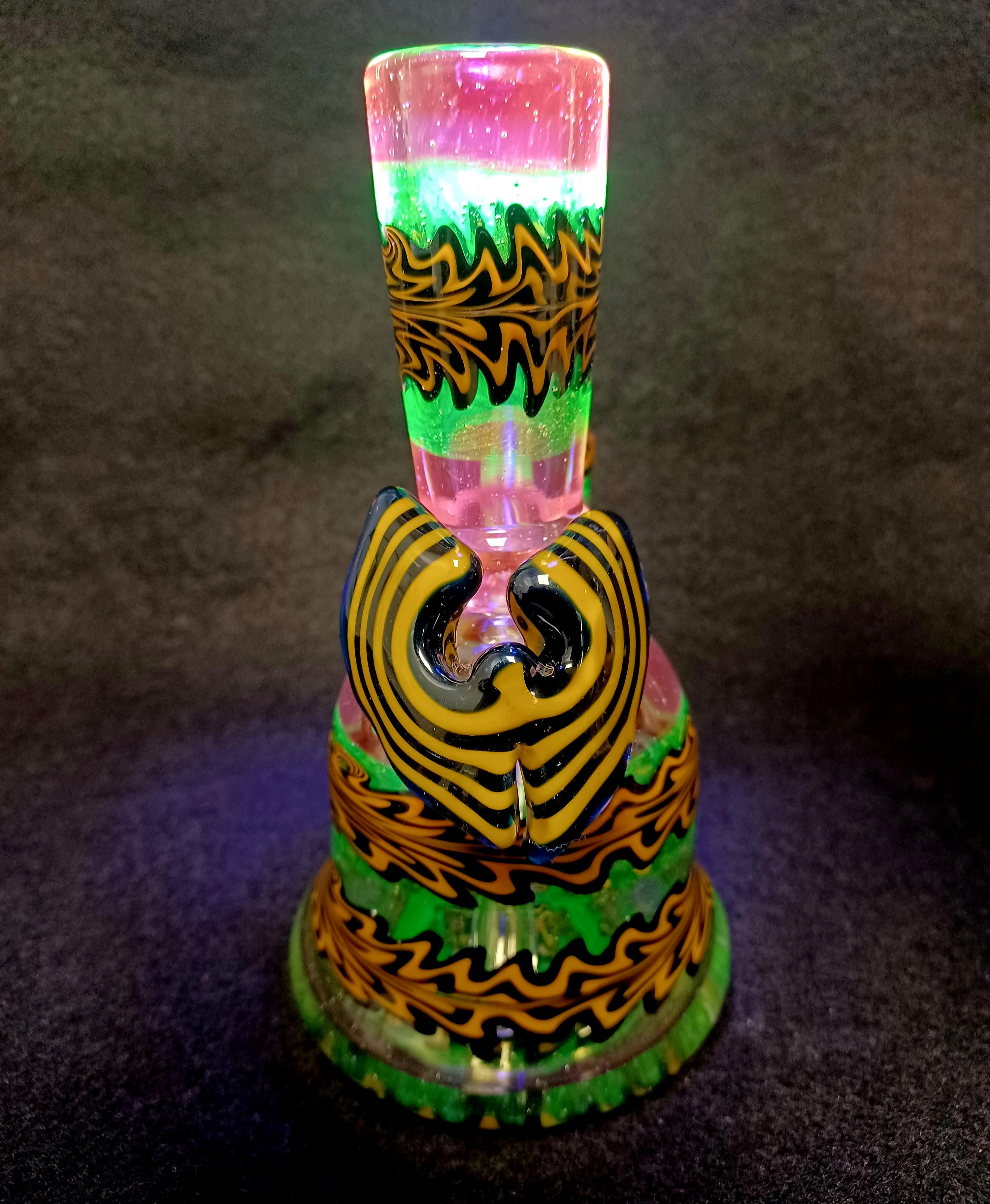 This rig isn’t nothing to f*ck with! This Wu Tang rig from Wilber Glass is a killer piece. Tons of amazing wig wag work all throughout. This rig really comes to life when you put it under the UV light. This piece comes with a Q-Tip holder and pelican case. Size 14mm