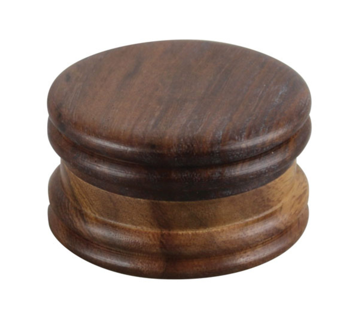 This 2 piece wood grinder features magnetic closure and measures 2 inches in diameter.