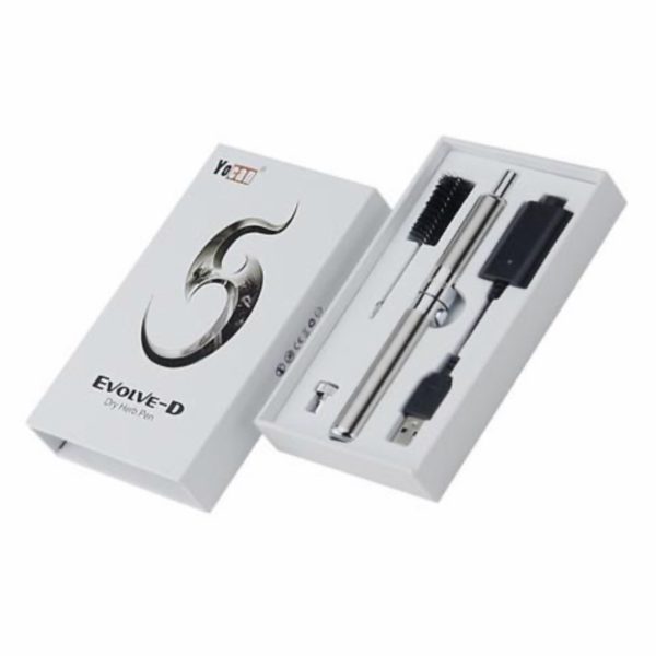 The Yocan Evolve-D Vaporizer places efficient dry herb vaporization in the palm of your hand with a compact pen-style design and a pancake-style dual coil atomizer. An innovative mouthpiece doubles as a protective atomizer tube and features a tamping device for packing the herb chamber tightly to ensure efficient vaporization. Featuring a solid chrome design with a rubberized exterior, the Yocan Evolve-D is a durable companion for on-the-go vaping.